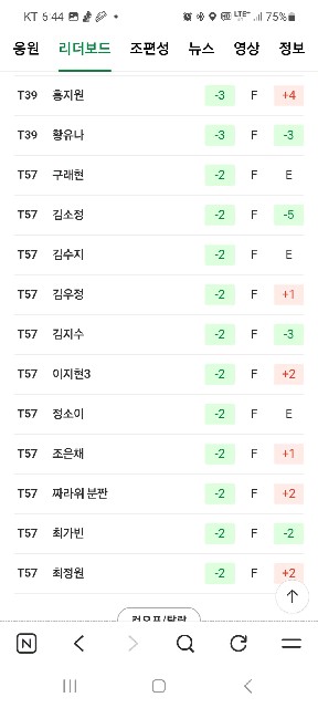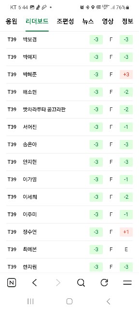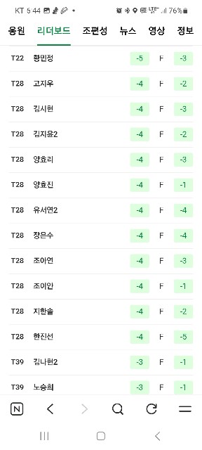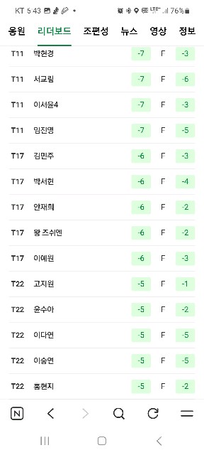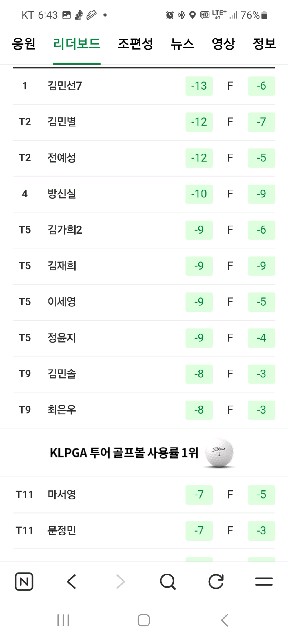 김민* 선수들이 상위권에 포진해 있네요. 방신실 선수 오늘 약진입니다.