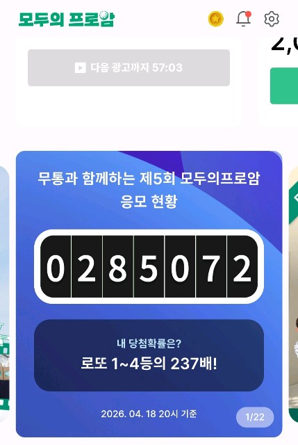 모두의프로암 5회 카스카디아 응모일이 딱10일 남았습니다 저도 매일매일 도전하고있는데당첨확률이 237배 나오네요.남은기간동안 응모에 최선을 다해당첨의 행운을 기원드립니다 🙏🙏