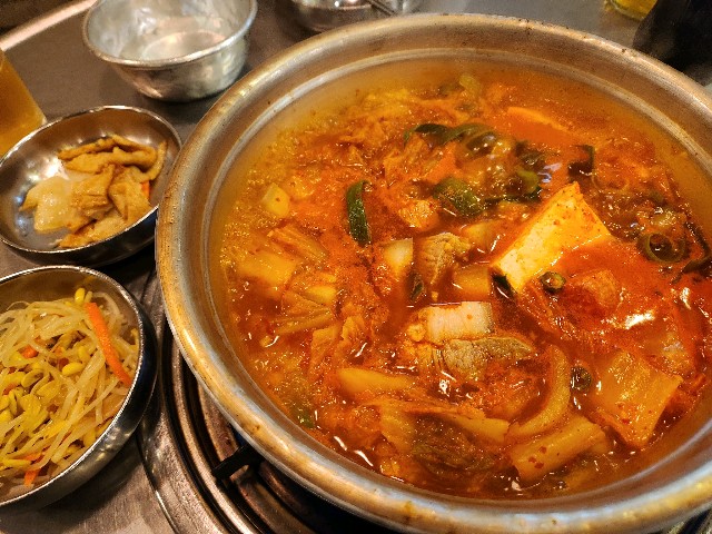 양은 냄비에서 김치찌개에