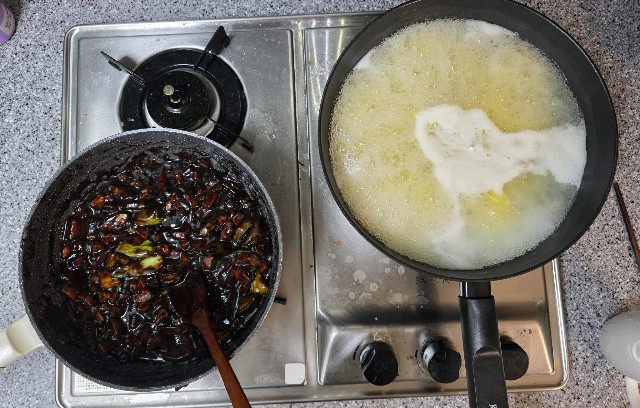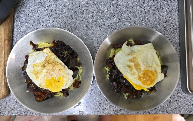 열시에 와이프랑 스크린 한판후 점심 사먹어해먹어하다 조리 자장면 세트 사다 놓은거 생각나 그래 가다 노브랜드 들려서 야채랑돼지고기 사서 해먹자 신나게 야채썰고 물끊이고 후다닥 만들어 먹었습니다 결과는오~사먹는것 보다 맛나서 면먹고 밥한공기뚝딱 오늘도 와이프랑 같이 만들먹은 점심뿌듯함과 즐거움이 있었군요~^^남은 주말시간도 모두 행복하게 보내세요👋