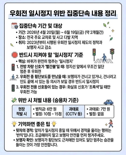 지금 부터는 우회전시 무조건 일단 멈춤해야