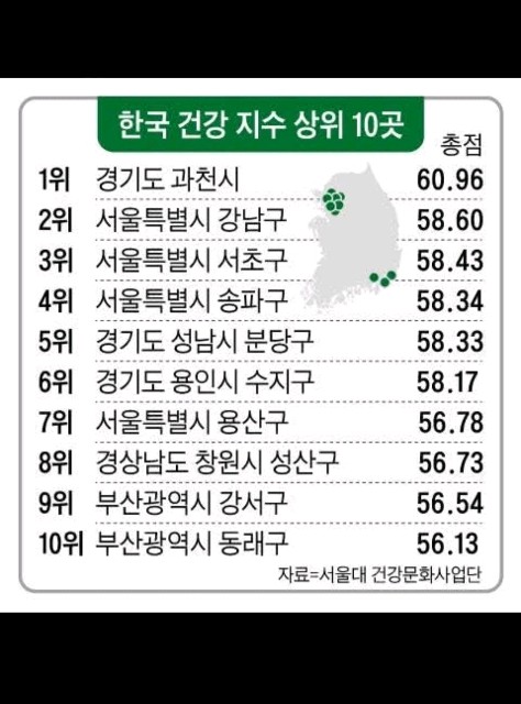 우리나라 어느 지역분들이 가장 건강하신지..
