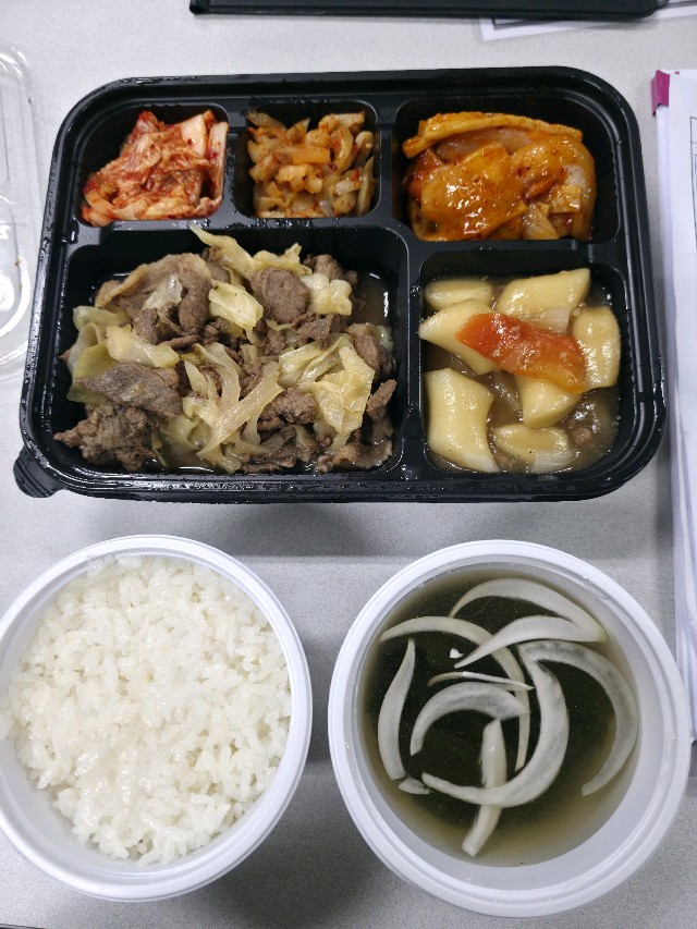 오늘은 간장돼지고기,미역냉국으로 해결! 즐거운 식사하세요~