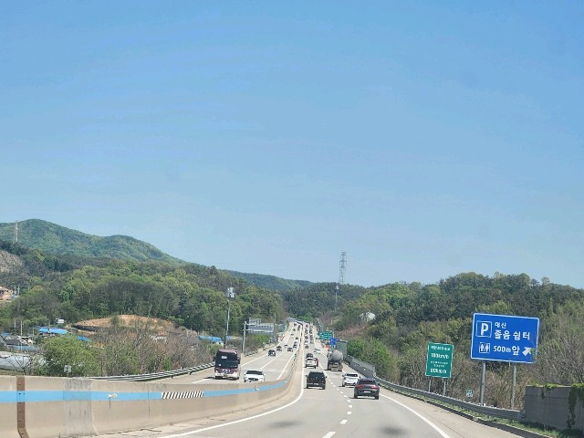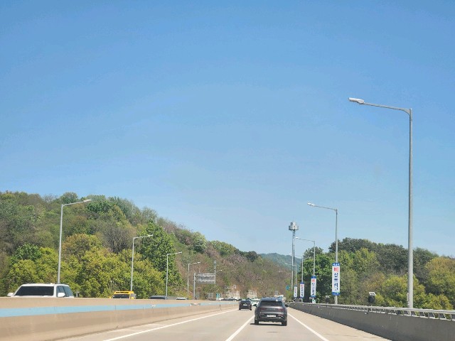 하늘은 푸르고산은 연녹으로 물들고90년도 음악은 신나고나는 졸리고~~~출장이 아닌라운드 길이라면 최고 일텐데..난 졸려도 후딱 차 막히기전물건 싣고 돌아와야한다