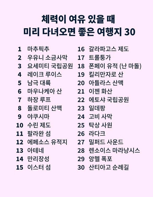 여러분은 이 중에 몇 군데나 다녀오셨나요?