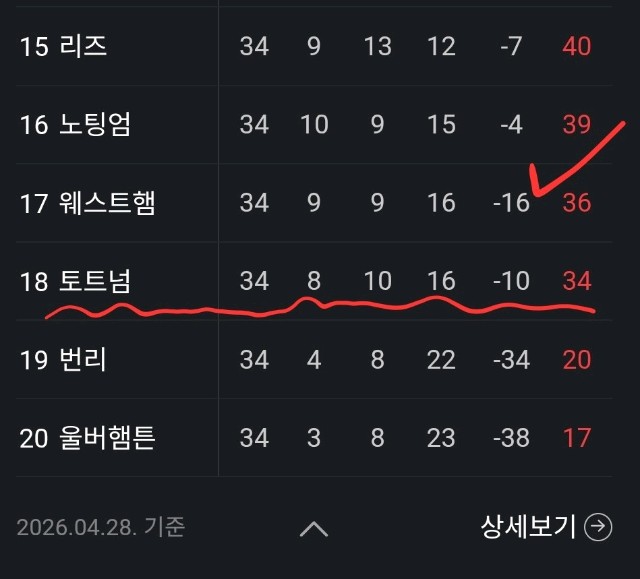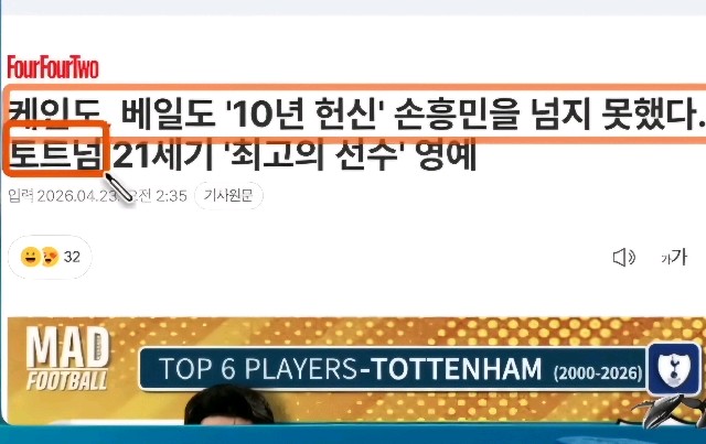 손흥민이 작년까지 몸담았던 토트넘이 역사적으로 2부리그 강등 직전이네요! 4게임 남은 현재 60%가까운 확률로 강등이 될꺼라고 하니, 처참하네요...그런데 톳흠 탈 하고 미쿡서 행축하고 있는 손흥민은 케인마저 제치고 토트넘 역사상 가장 빛나는 '최고의 선수!' 라는 영예에 올랐습니다. 역시... 쏘니 쵝오!!👍👍👍