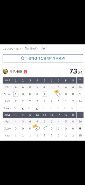 어제 프로암 당첨되고 설래는 마음으로 스크린 바로 예약하고 친구랑 한게임.프로암 행사 간다는 기대감과 업된 기분탓인지 평소보다 좋은 스코어가 나왔네요 ㅎㅎ프로암 너무 기다려지네요