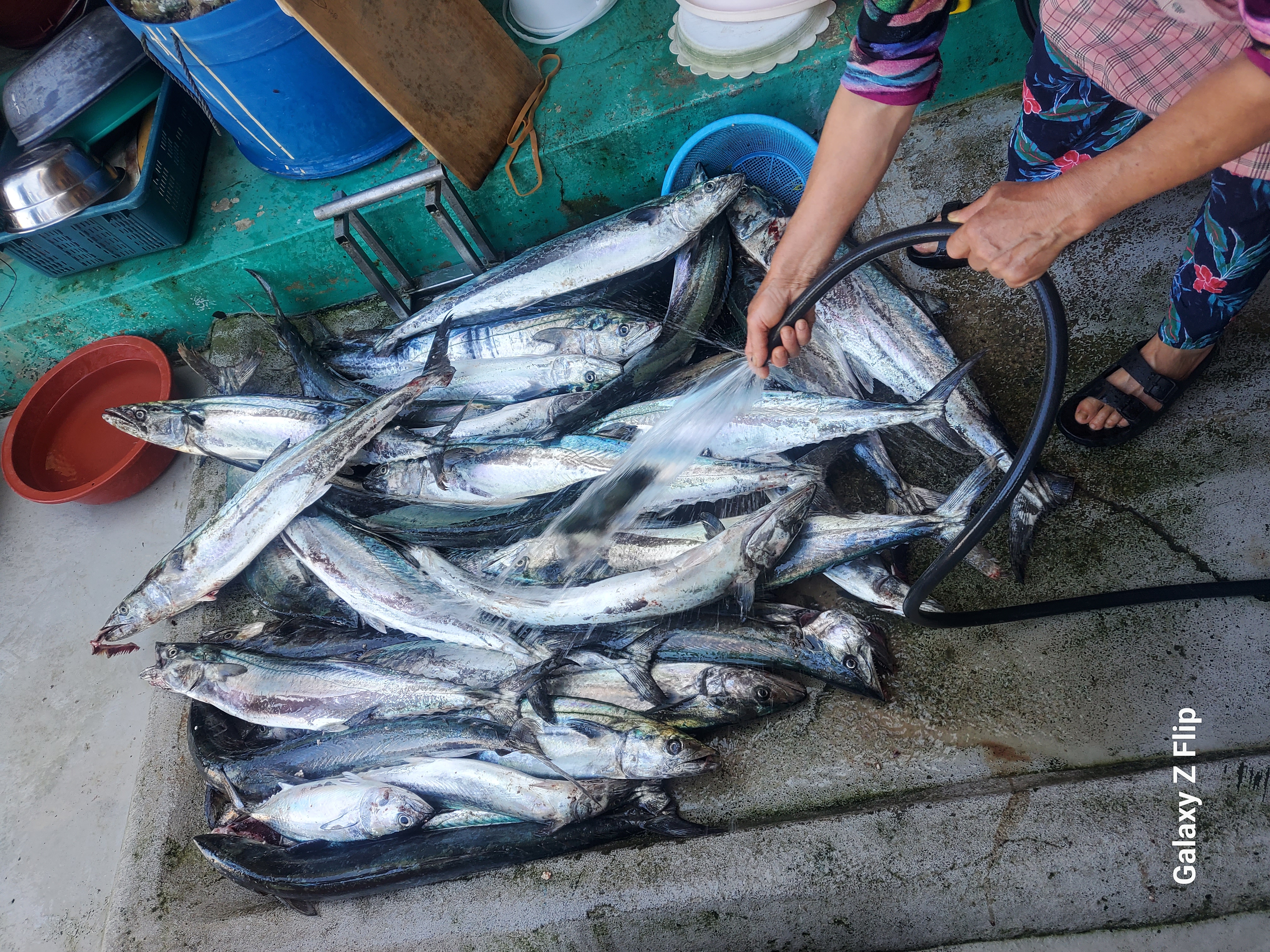 멀리 보길도와 추자도 사이에서 잡은 삼치.