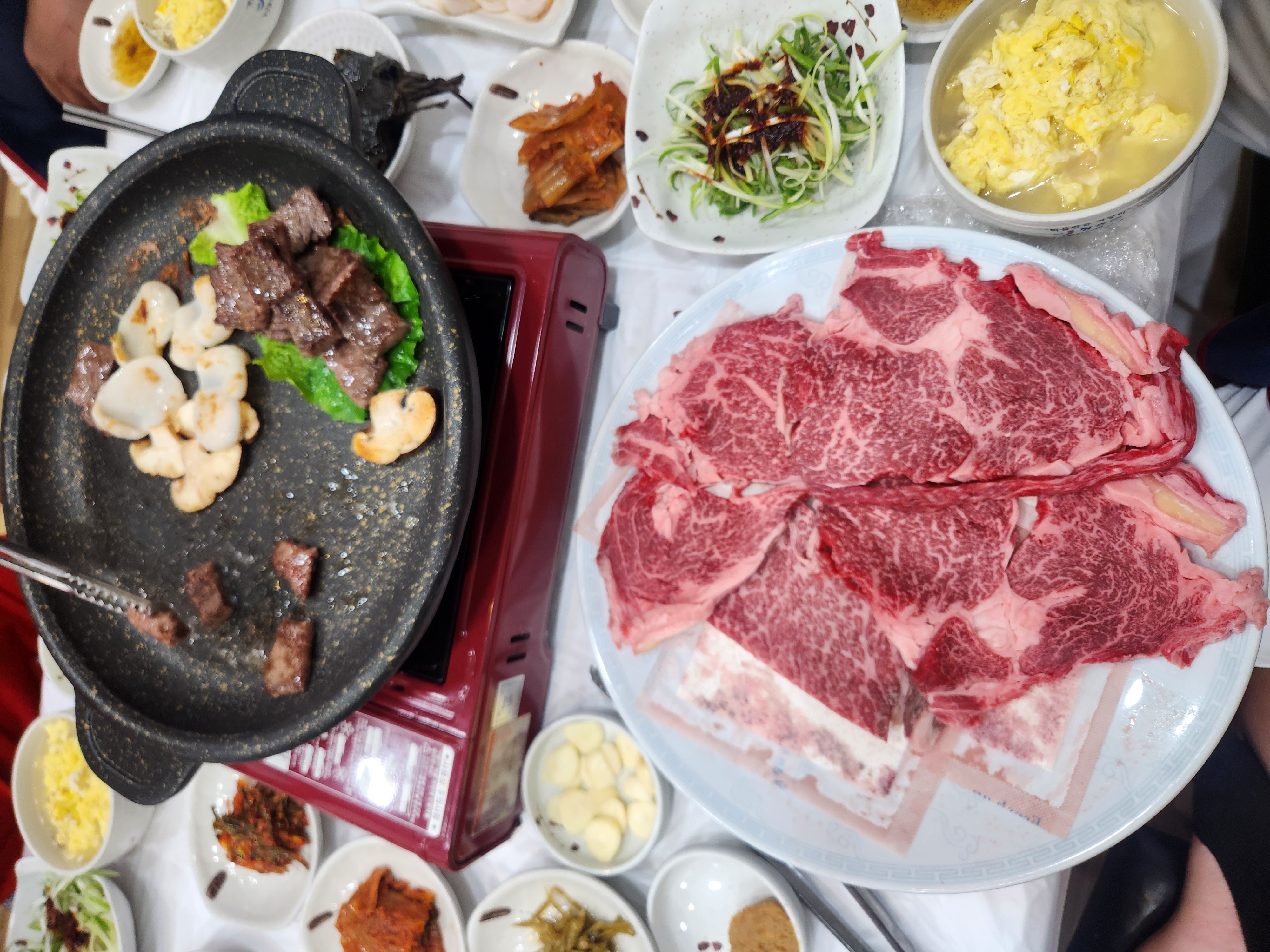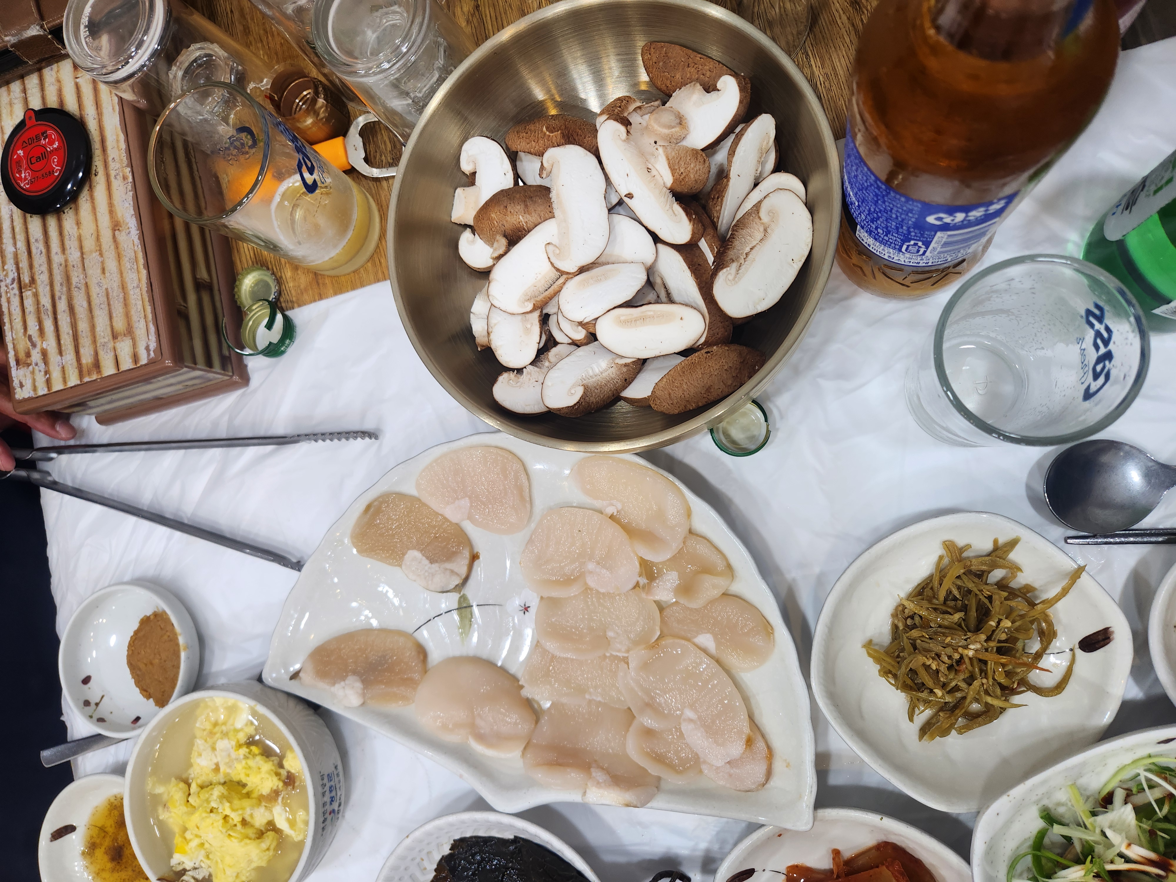 날씨한번 화창한게 골프치기 딱 좋은날이였습니다 12시5분티 한낮에는 살짝 더운듯 했지만 티박스는 파3 빼고는 잔디 그린은 2.7정도라는데 좀더 빠른 느낌. 페어웨이는 관리상태 좋꾸요 디봇도 별로없어서 좋았어요 전반에 쪼꿈 힘들었는데 후반은 그런데로 쳤네요. 타수는 비밀 ㅎㅎ 저녁은 장흥 삼합(소고기 표고 키조개관자) 만이묵고 다시 낼을 위해 일찍 잘랍니다. 그늘집은 최고입니다
