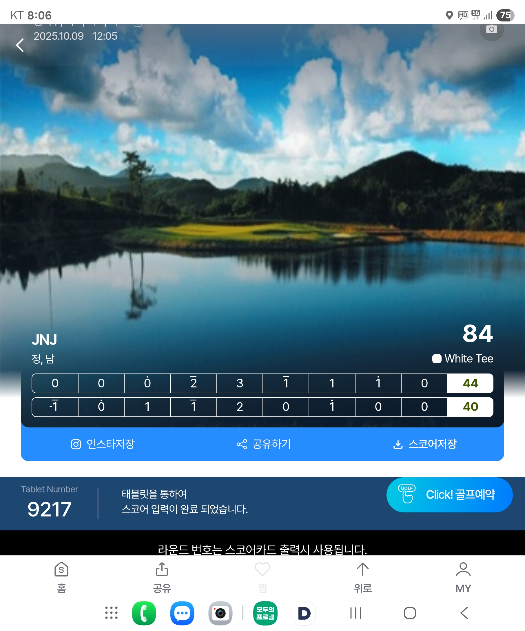오늘 스코어 올립니다 낼은 79타를 목표로 첫홀은 일파만파로 근디 나는 보기로.
