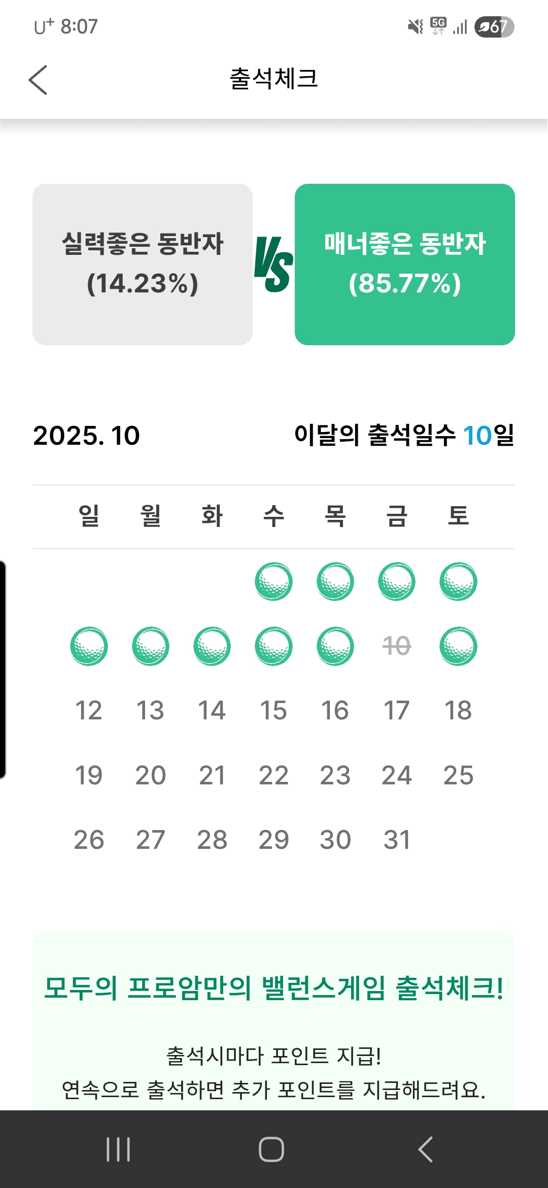 어제 출첵 했는데.. 미출로 되었네요.. 100일로 가던 기록이 깨졌어요 ㅜㅠ