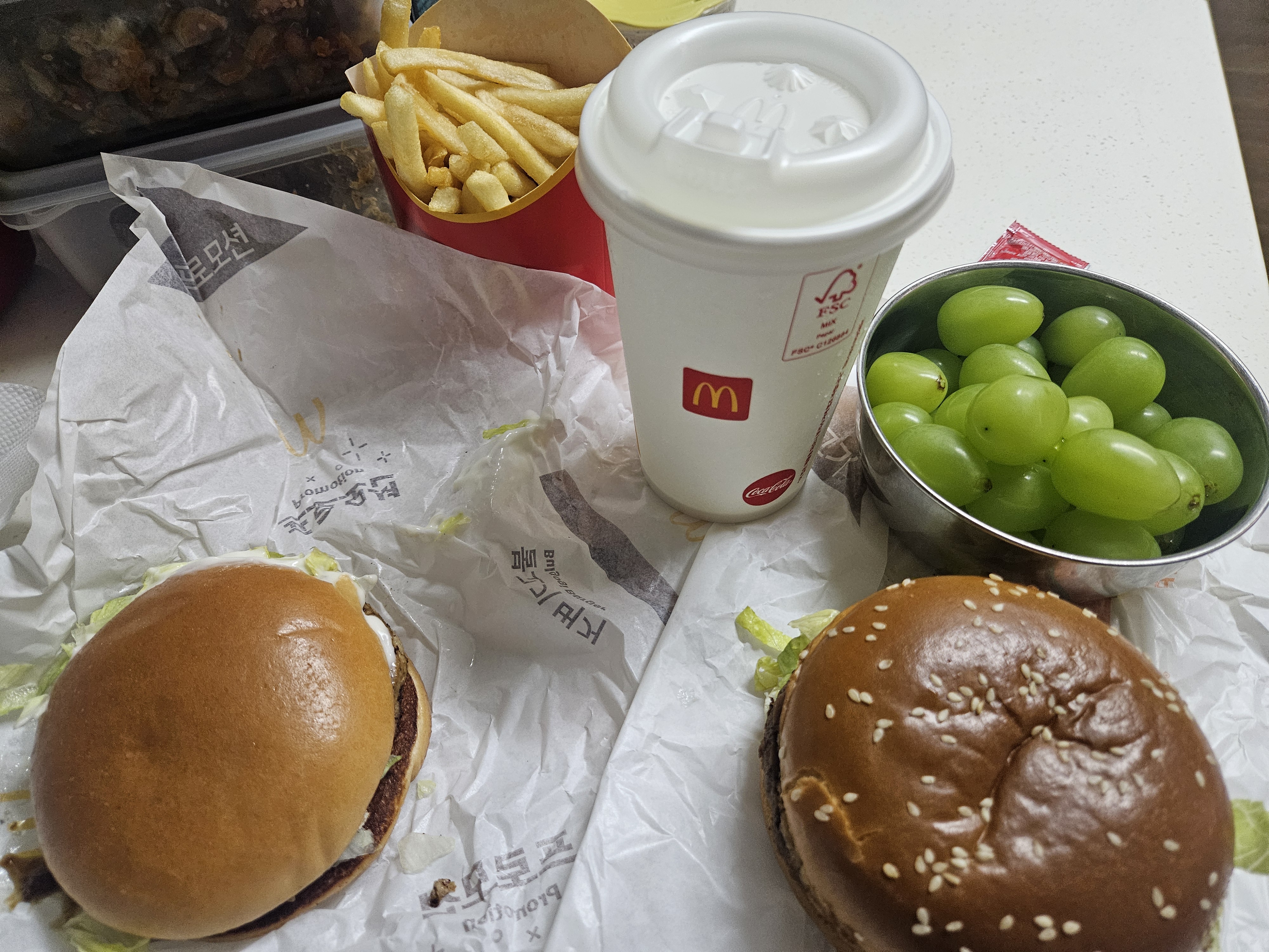 아침을늦게 해서 점심생각도 없고해서 간단하게 햄버거로 때움니다. 맛은 그닥 쏘쏘하네요.. 한국사람은 밥이 최고네요..