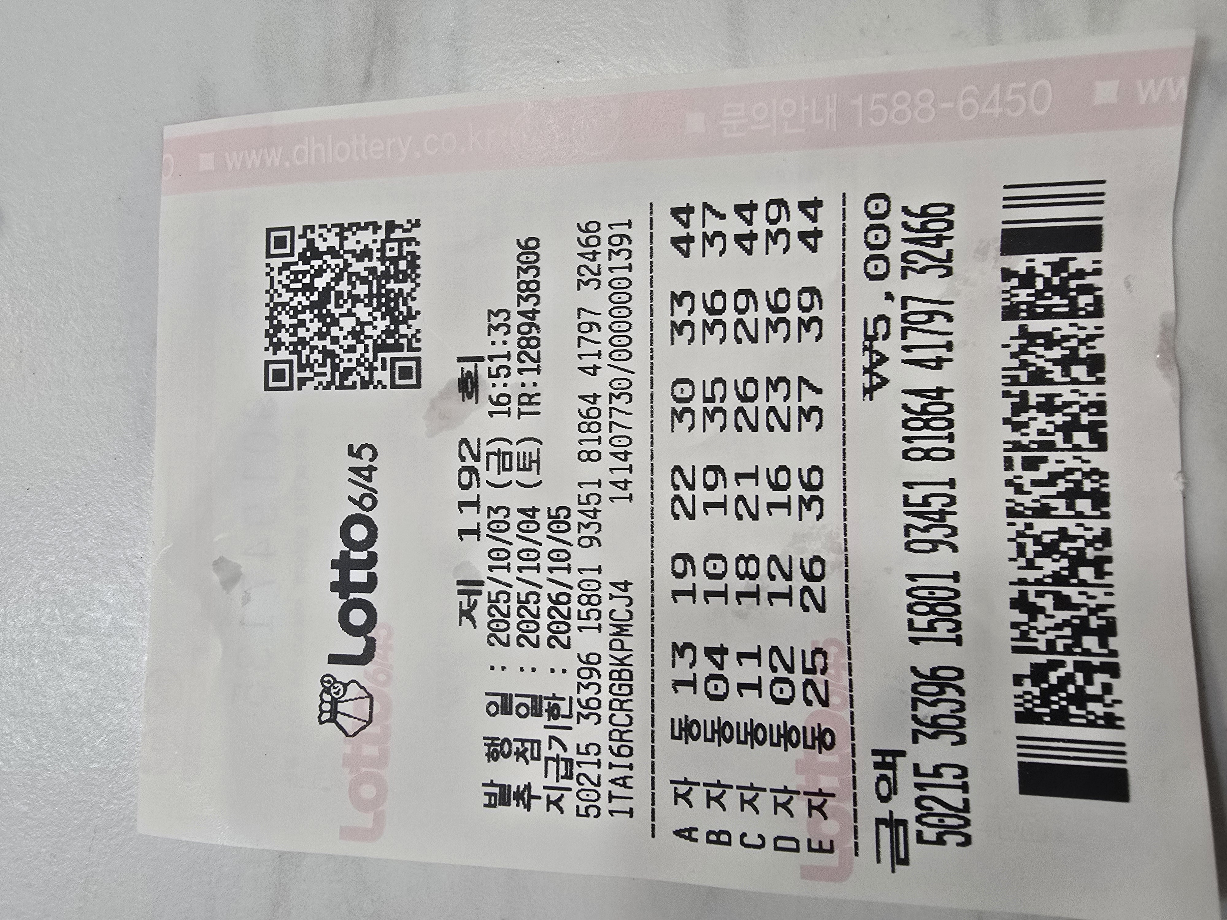 지난주 오만원 또 당첨 됐어요... 뭐 사먹지..ㅎ