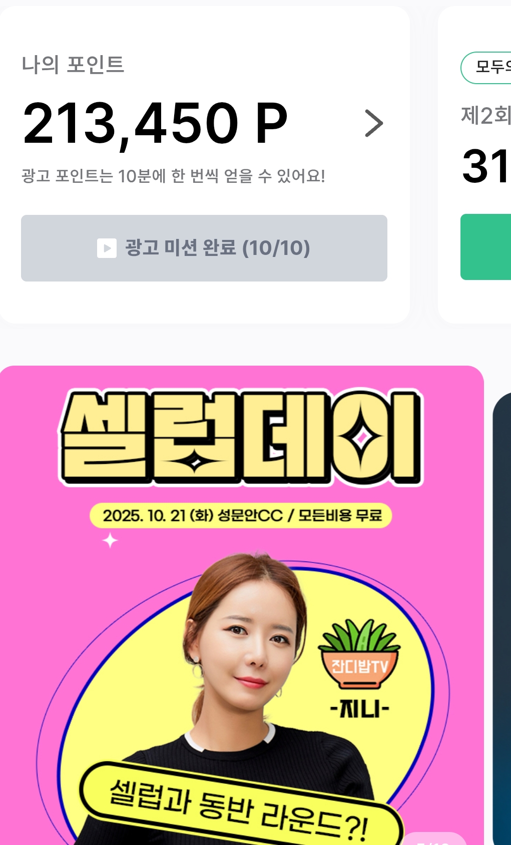 모프에 올인 하고 싶지만 10만포인트는 지니님께. 나머지는 조금씩 이벤트에. 남은 기간 모은 포인트는 프로암에 분산 하기로... 결과에 후회 없이... 저 10만 포인트로 양탄자 살꺼에여...