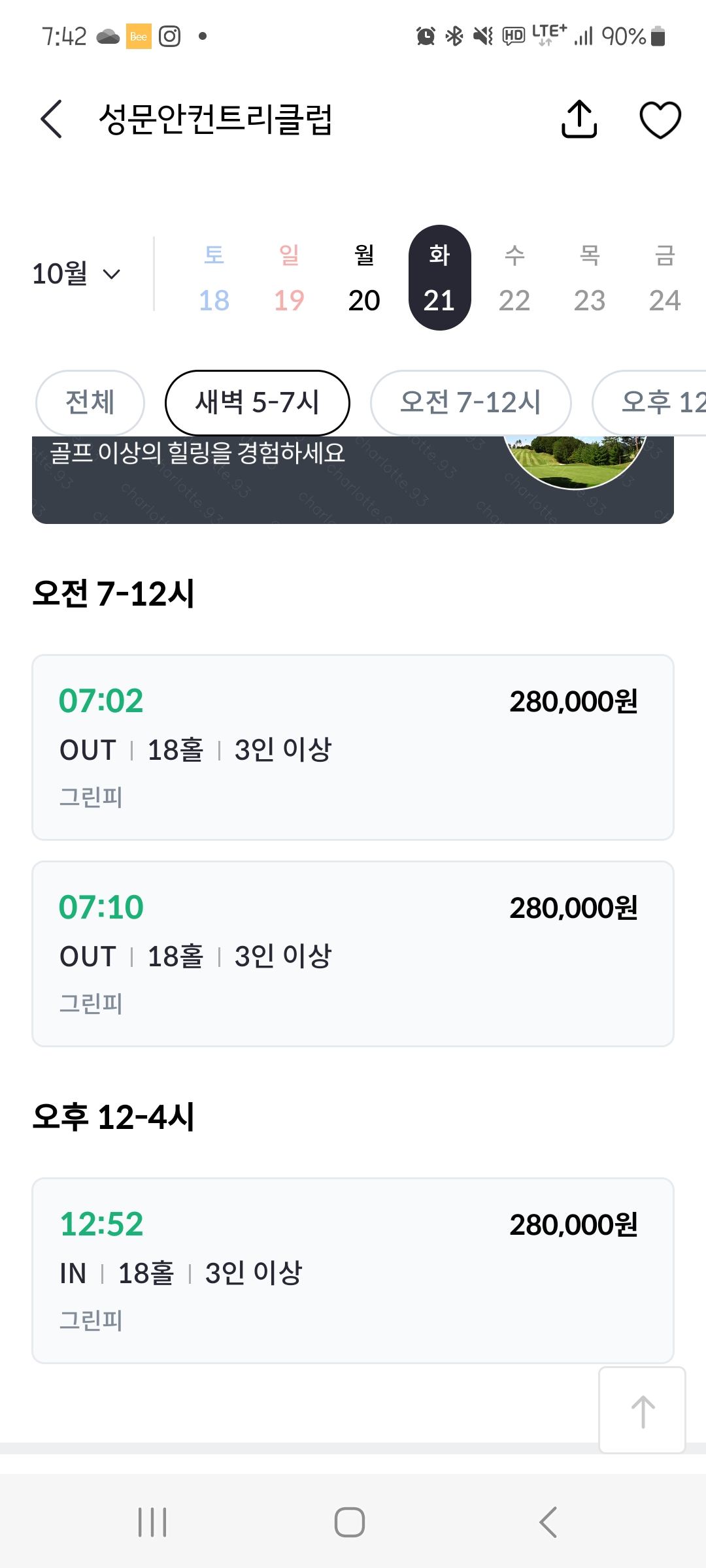성문안cc 그린피가 ㅎㄷㄷ하네요~~ 촌놈 일절 몰랐습니다;; 명문구장 민폐안되야 할텐데 걱정이네요ㅠ