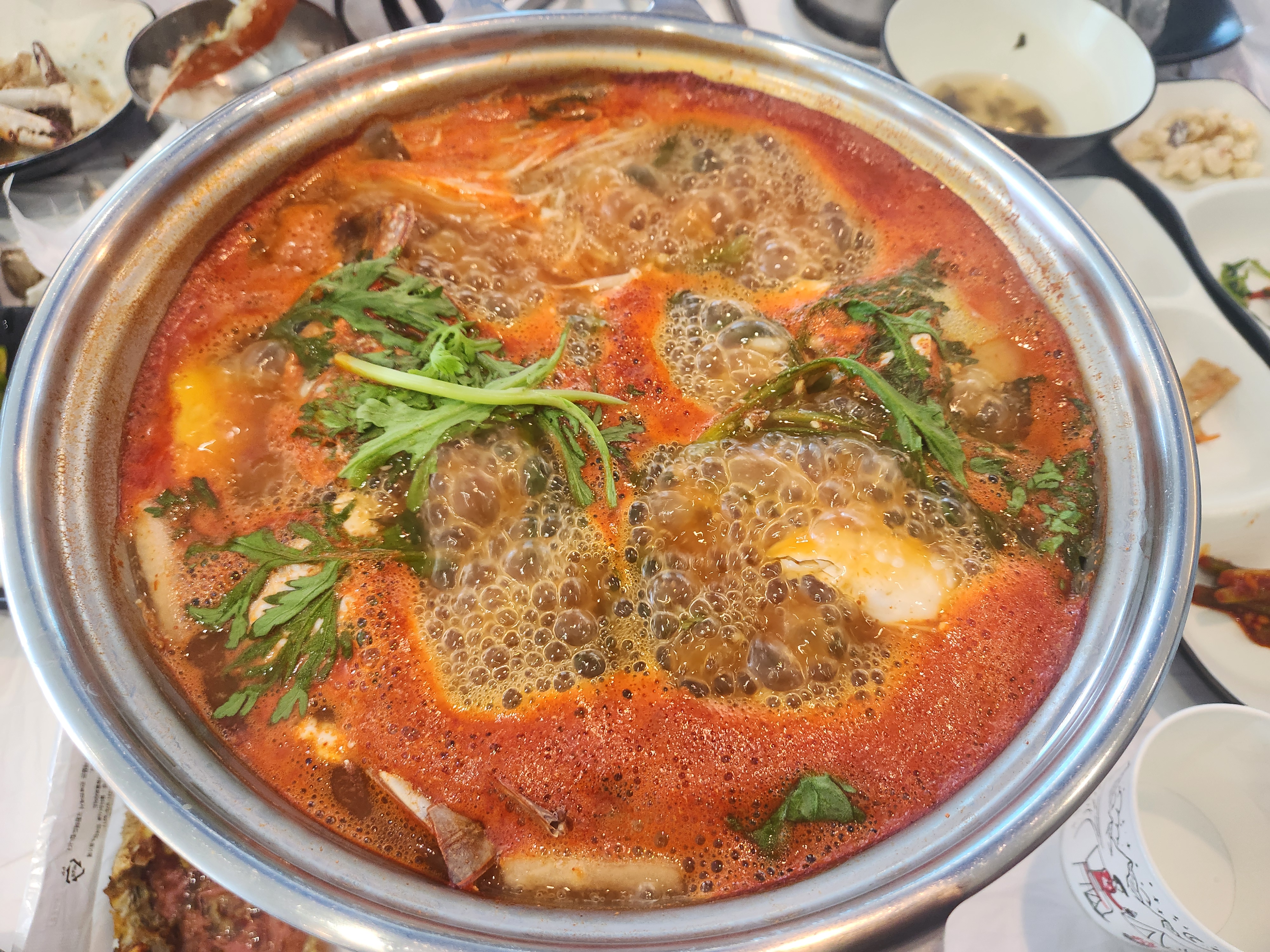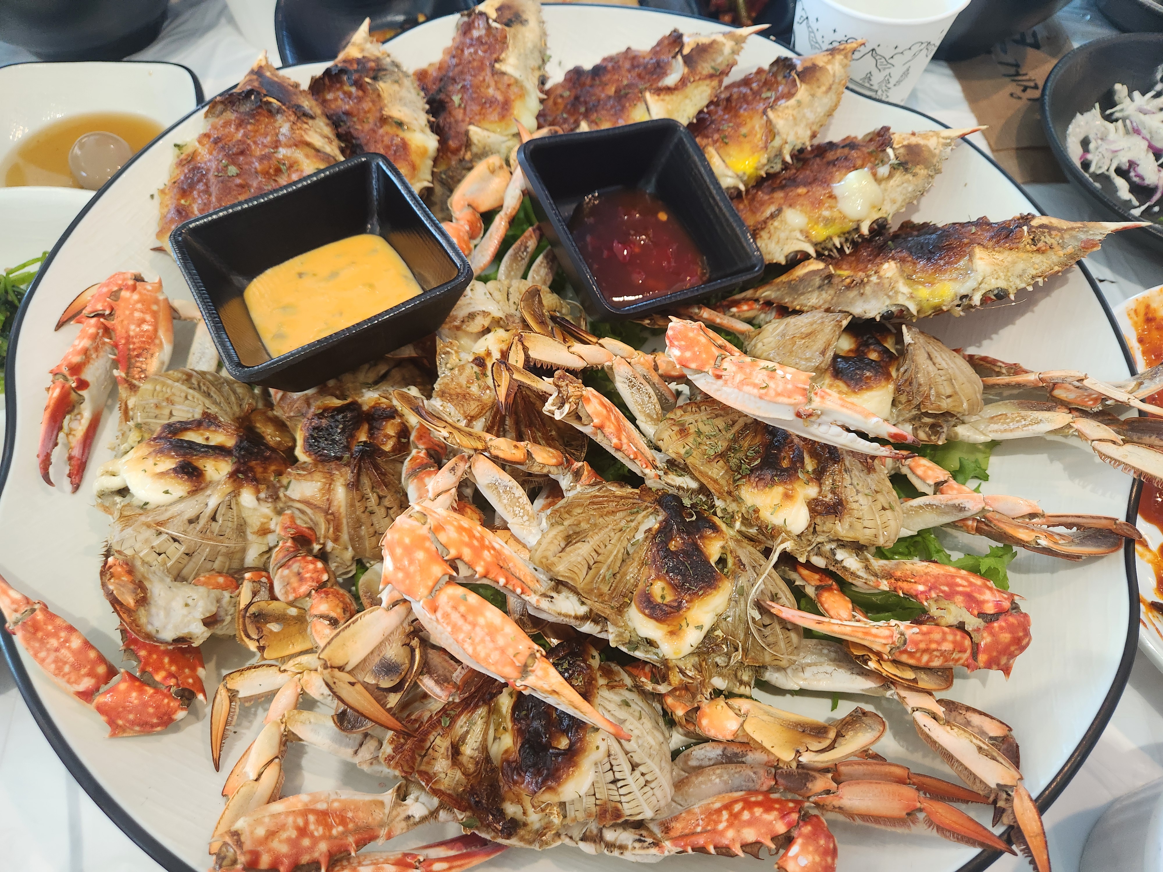 인천 영종도 통큰게장 집 간장게장 짜지않고 먹을만 합니다 다만 꽂게가 너무 작네요 꽃게마요치즈구이 호불호가 갈리네요 어머님 와이프 딸은 좋아하구 전 별루 ㅠㅠ 꽃게탕 맛은 평범 깔끔한데 안에 꽃게가 가장 실함 가격이 만만치 않은데 가격대비 전 별로