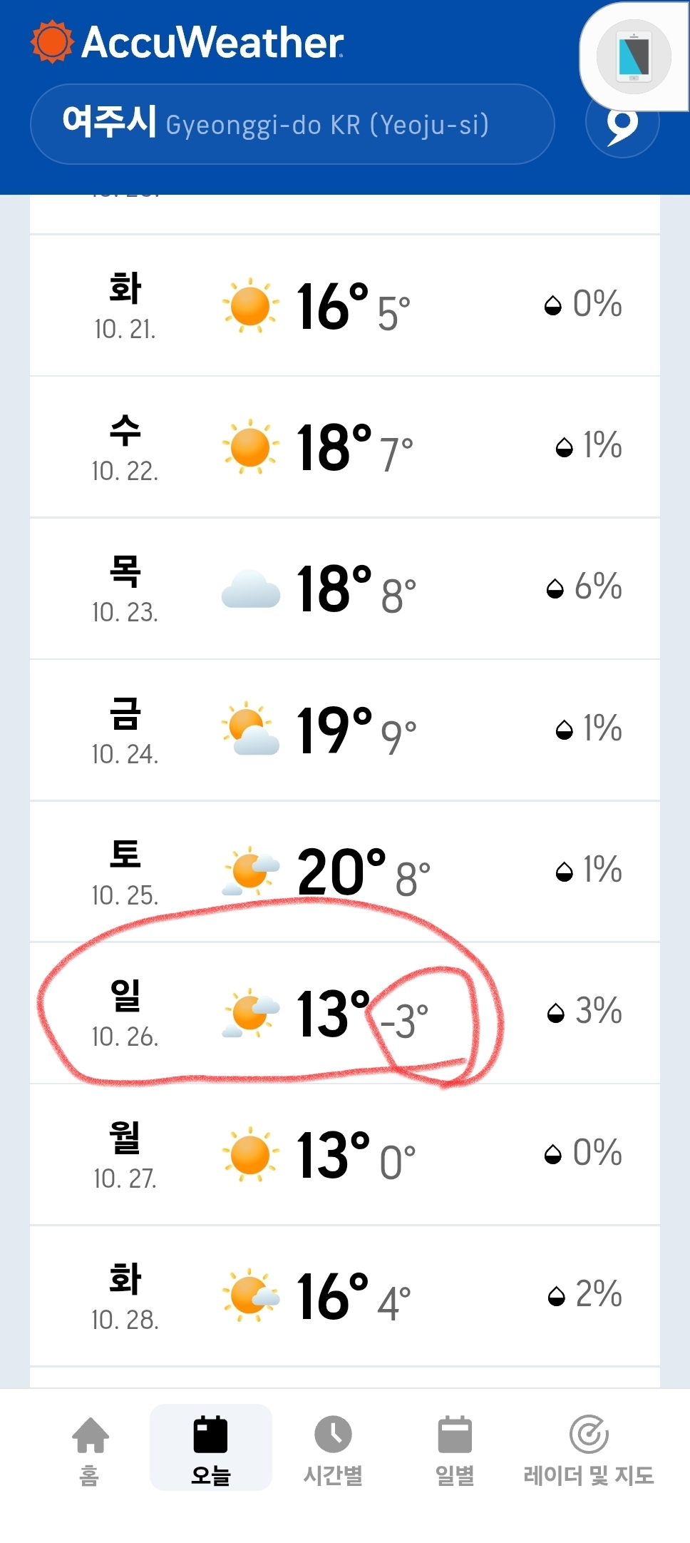 이번주 일욜 영하