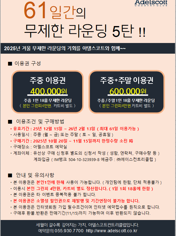 스키장 시즌권 같은건가 했지만 그린피4,카,캐 별도.. 먼곳이라서 가는거 자체가 비용이라 전 별룬데 가깝다면 어떨런지..