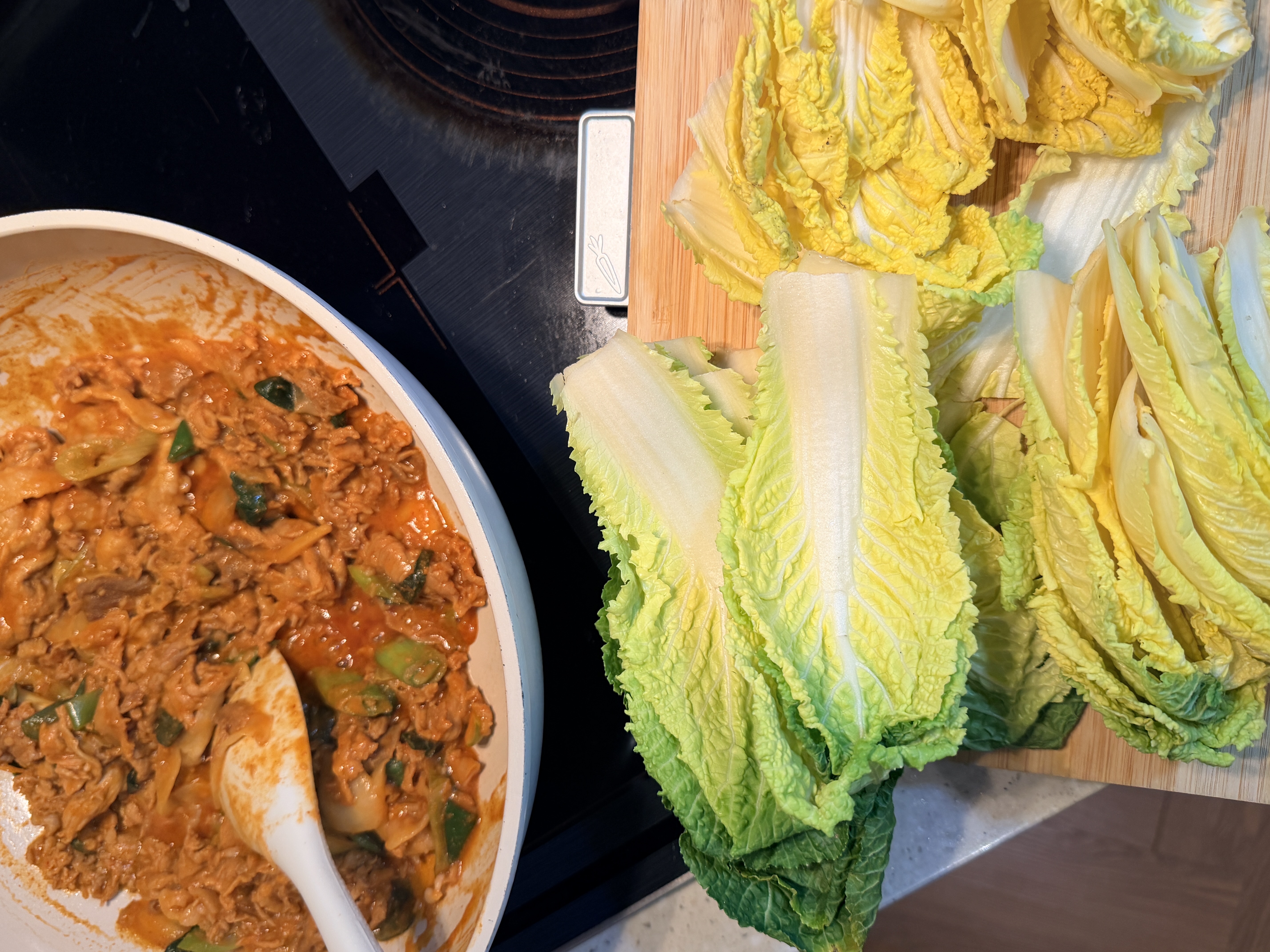 제육볶음에 핫한 봄동비빔밥을 해봅니다 즐거운저녁시간되세요