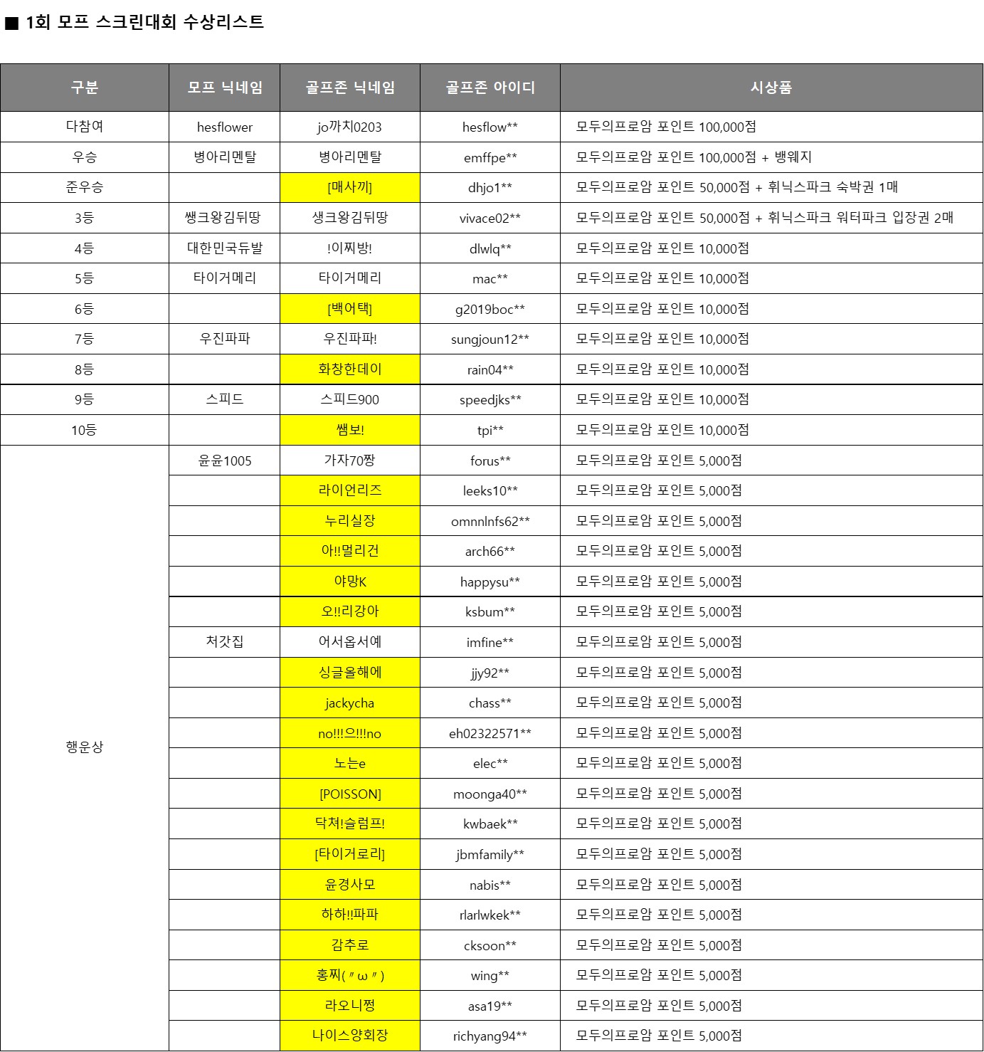 [공지] 제1회 모프 스크린대회 수상자 포인트 지급 3/10(화)
