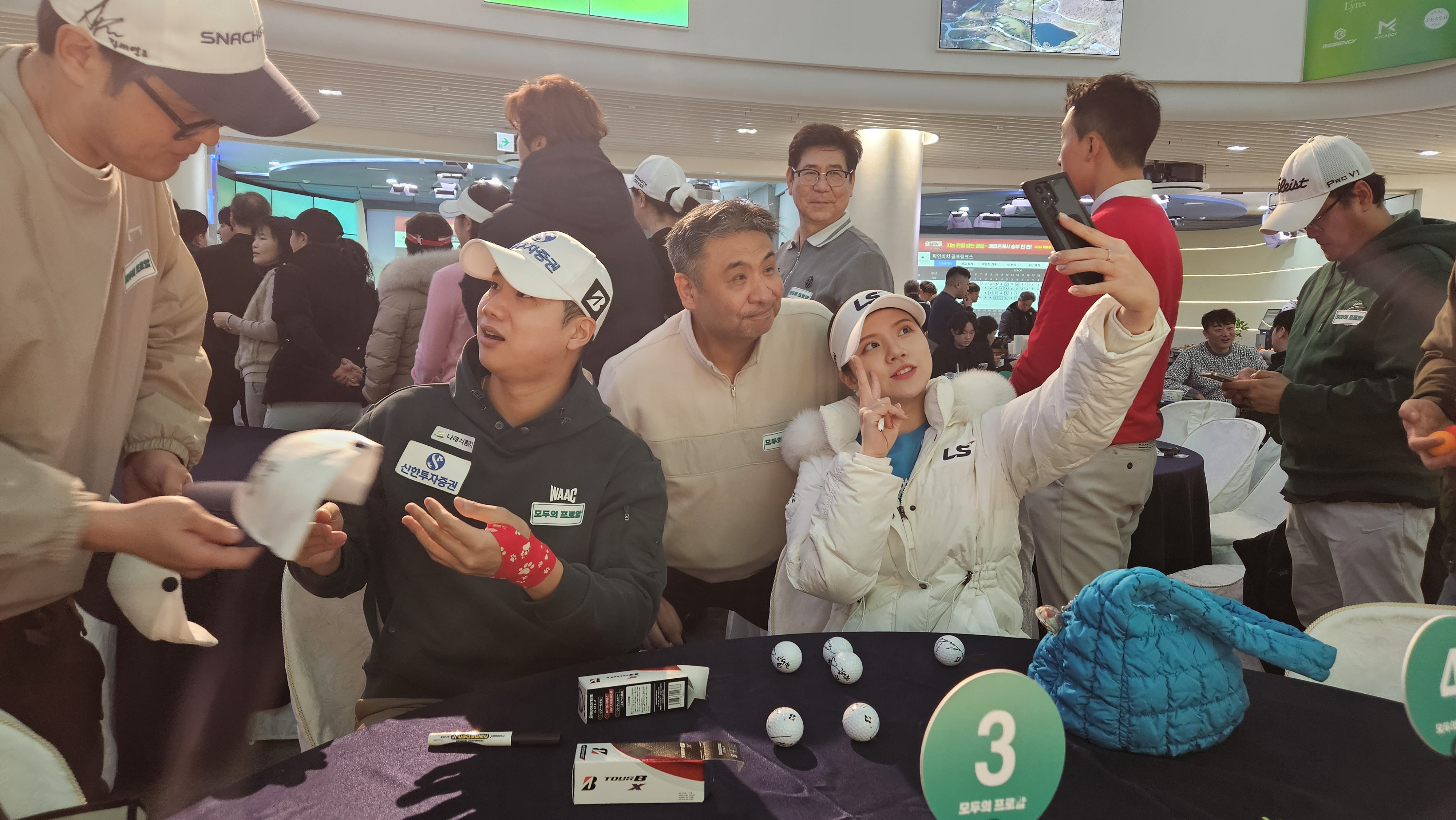더이상 무슨 말이 필요합니까? 두번의 탈락은 미련버린지 오래고, 3회프로암 조이마루만 기다렸다. 꼭 간다 밤새 잠을 설치고 선잠을 자고 난뒤 새벽부터 눈바람을 가르며 220km를 달려 도착했네요 입구에서 받은룸은 3조 공태현프로 꿈이 아니길 바랬습니다 같은조 닉네임이 다들 심상치않습니다 꽉꽉꽉꽉꽉 : 핸디 -4 /고수 테리맥길로이 : 야구선출 / 2I티샷 / 프로골프준비중 응원합니다 공태현프로 : 설명필요없슴, 부상임에도 참여해주셔서 정말로감사 (마산출신) 웃고, 즐기고, 나이쓰, 굿샷, 휴~ 화이팅 외치고 나니 순식간에 종료 되었네요 1층라인은 박단유,이용희,공태현,송한백 이라 싸인,사진 공세에 다소 어지러워 정신이 없었네요 김황중아나의 재치로 행사진행도 굿이었고, 특식은 너무 맛있어서 몇번을 먹었네요. 레슨타임도 성황이었고요. 박단유프로는 AI같은 플레이에 깜놀했슴다 공태현 : 참 진지하고 쾌할만땅 한지민 : 넘 예쁘고, 명랑철철 마지막 성심당 선물은 화룡점정 이었습니다. 대표님의 3월25일 해남 파인비치에서 만나자고 하는 인사말씀 꼭 참석하겠습니다. "모두의 프로암이여 영원하라~"