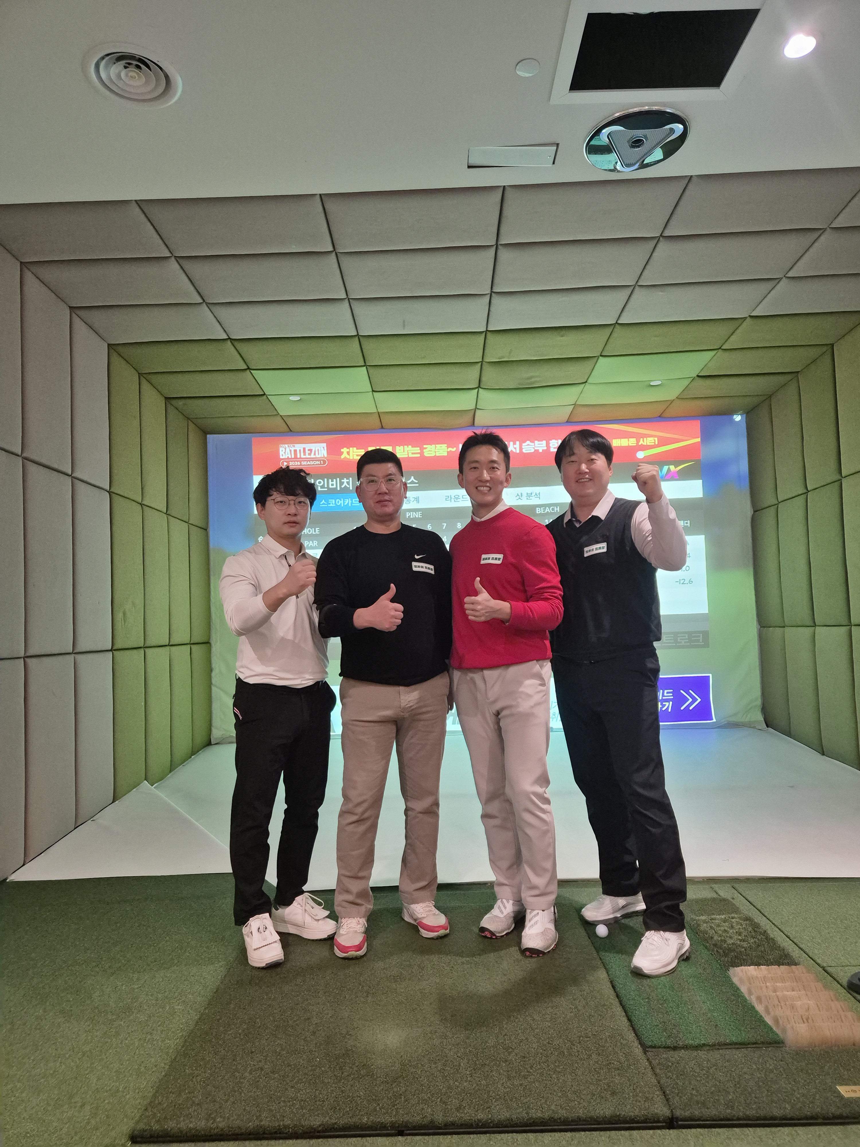 1부 프로님과 함께 스크린한판 너무 좋았습니다 골프실력 향상에 벽이 느껴졌었는데 조진형프로님의 열정적이고 정확한 레슨 덕분에 한줄기 희망이 생긴것 같습니다 스크린 치는 동안 프로님 샷보다 저희 아마분들 샷을 보시고 하나라도 더 알려주시려는 노력 감동이고 고마웠습니다 맛있는 뷔페와 2부로 이어진 레슨시간 너무 성심성의껏 레슨해주신 프로님들 최고였습니다 레슨 받으면서 숙제를 잔뜩 받아가네요 연습장에서 꼭 숙지해서 제것으로 만들고 싶네요~ 마지막으로 이런 큰행사를 준비하고 만들어주신 대표님이하 직원분들 너무 큰 노고에 감사드립니다 저의 골프인생의 큰 전환점이 될것 같습니다 감사했습니다^^