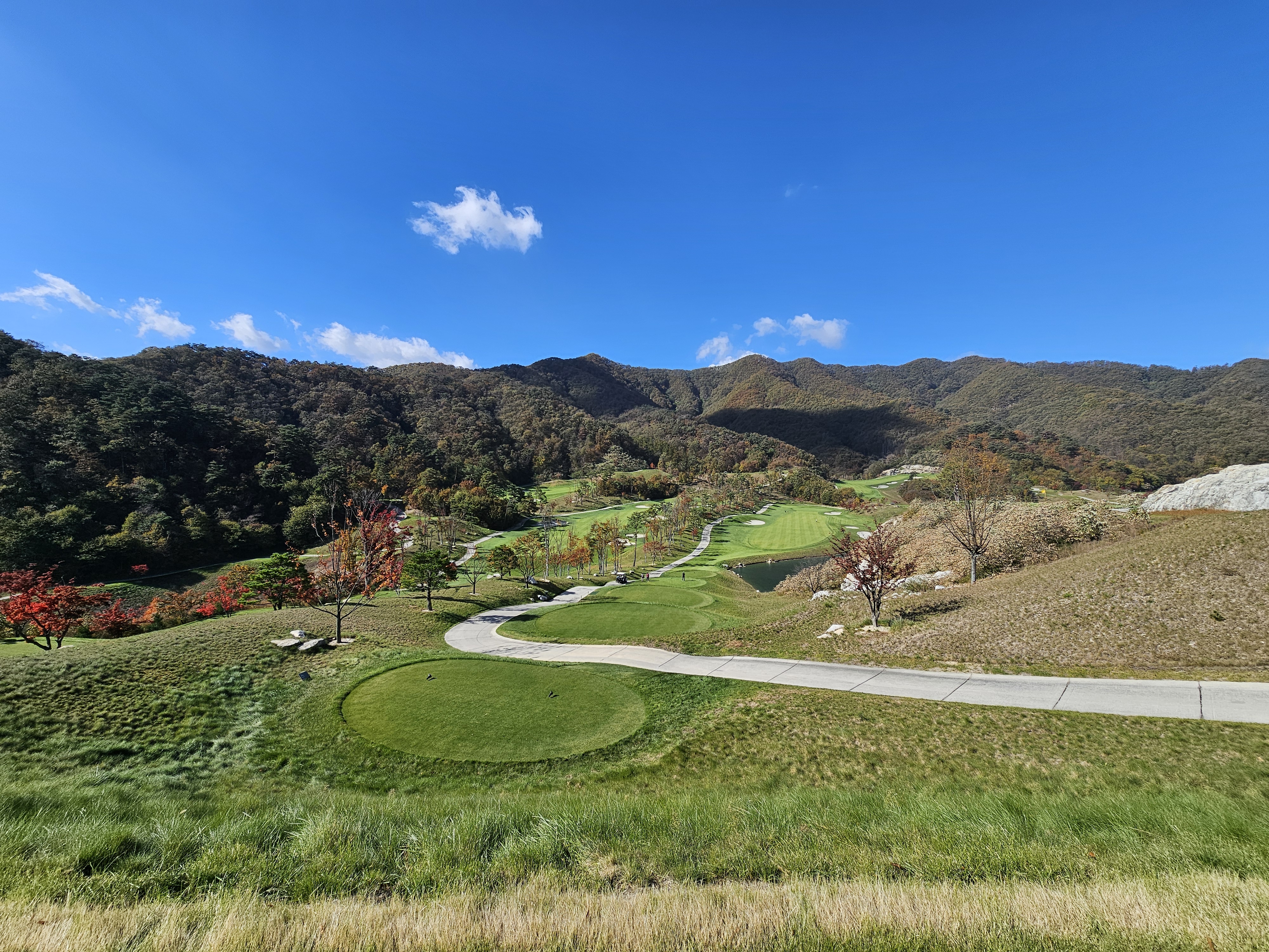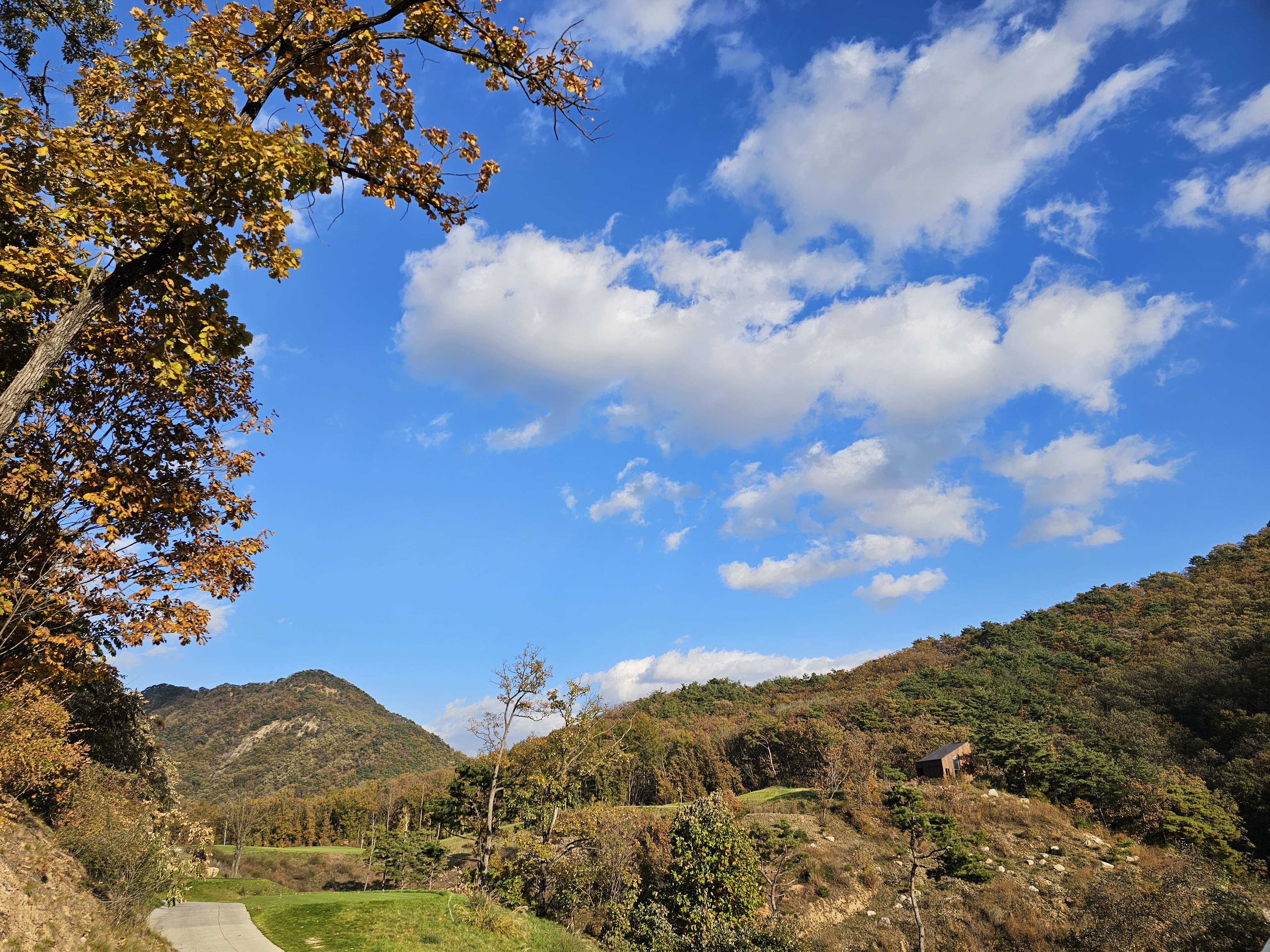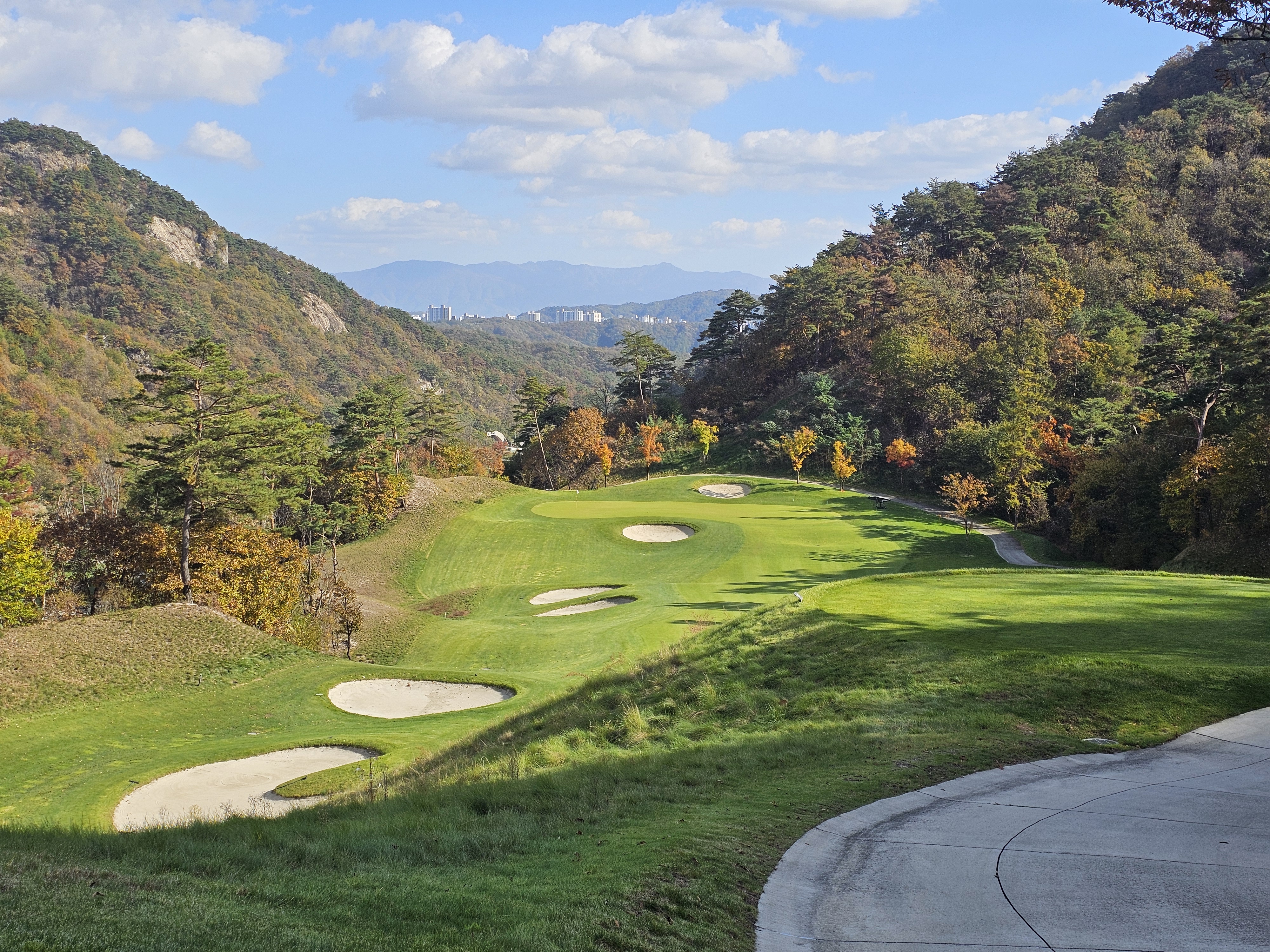 3회 주간홀인원 당첨권으로 다녀온 성문안cc 후기입니다. 8월에 당첨된 주간홀인원으로 성문안으로 가을 라운드를 다녀왔습니다. 11월 2일 일요일 11:35 OUT코스 일기예보는 맑았으나 온도가 8~11도 다소 쌀쌀할 것으로 예상되었는데 햇살이 따뜻해서 그리 많이 춥지는 않았습니다. 그런데 바람이 좀 많이 불어서 골프칠 때 쉽지 않았습니다. 출발은 수원에서 8시40분 수도권제1순환도로와 광주원주고속도로를 통해 하나도 밀리지 않고 성문안 입구에 10시경 도착했습니다. 입구 바로 앞 송암 막국수에서 두부 전골로 라운드 전 식사를 했습니다. 민물새우탕이나 생태탕 같은 칼칼하고 시원한 맛이 괜찮았습니다. 갠적으로 이집 막국수는 그냥 그랬습니다. 클럽하우스로에서는 발렛으로 편하게 주차했고 스타트 하우스로 나가보니 햇살은 따뜻한데 바람이 꽤 많이 불었습니다. 그린스피드는 3.0이라 공지됐고 체감은 그것보다는 살짝 느린 2.7~2.9 사이 정도 느껴졌습니다. 엄대장님 후기에서 리무진 카트 업그레이드 내용을 보고 저도 전화로 리무진 카트로 업그레이드 했습니다. (엄대장님께 감사 드립니다.) 그래서 총 비용은 카트 업그레이드 비용 10만원으로 끝났구요. 캐디피는 별도인데 여기는 기본이 16만원이네요. 팁 주실 분들은 참고하시면 좋을 것 같습니다. 리무진 카트는 생각보다는 공간이 효율적이지 않았습니다. 옆사람과 몸이 닿지 않는 장점외에는 짐들 놓기 편하지 않았고 장신이신 분들은 타고 내리기 편하지 않고 무릎이 잘 부딪히니 조심하시는게 좋을 것 같습니다. 돈내고 편해야 하는데 그렇게 좋은 점을 느끼지 못했습니다. 성문안 골프 코스는 단조롭지 않아 재밌고 페어웨이나 그린 관리는 잘 되어 있는 편이나 조금 상해서 수리 중인 곳이 곳곳에 보였습니다. 그래도 열심히 관리하고 계시는분들을 많이 볼 수 있었습니다. 그린은 빠른 편에 미세한 굴곡이 많아 어렵게 느껴졌습니다. 주말이라 그런지 화이트 티박스를 시니어티 위치로 앞으로 당겨놓은 홀이 좀 있어서 요건 살짝 아쉬웠구요. 풍경은 말할 것이 없이 좋았고 캐디님도 친절하고 좋았습니다. 캐디님이 저희에게 진행을 재촉하진 않았지만 태블릿에 계속해서 진행을 재촉하는 메시지가 뜨는 건 좀 불편했습니다. 그렇게 4시 좀 안되서 라운드는 끝났습니다. 끝날 땐 좀 쌀쌀했는데 사우나에 야외로 오픈된 탕이 있어 몸 좀 녹일 수 있어 좋았습니다. 골프장에서 살짝 떨어진 지정갈비라는 식당에서 고기로 배 채우고 근처 커피샵에서 차 한잔하고 8시에 출발해서 영동고속도로 타고 오니 정체하는 구간 조금 있었지만 1시간 30분만에 집에 잘 도착했습니다. 이런 좋은 이벤트를 만들어 즐길 수 있게 만들어 주신 모두의 프로암 이승우 대표님과 스탭분들께 다시 한번 감사의 인사를 드리면서 후기를 마칩니다.