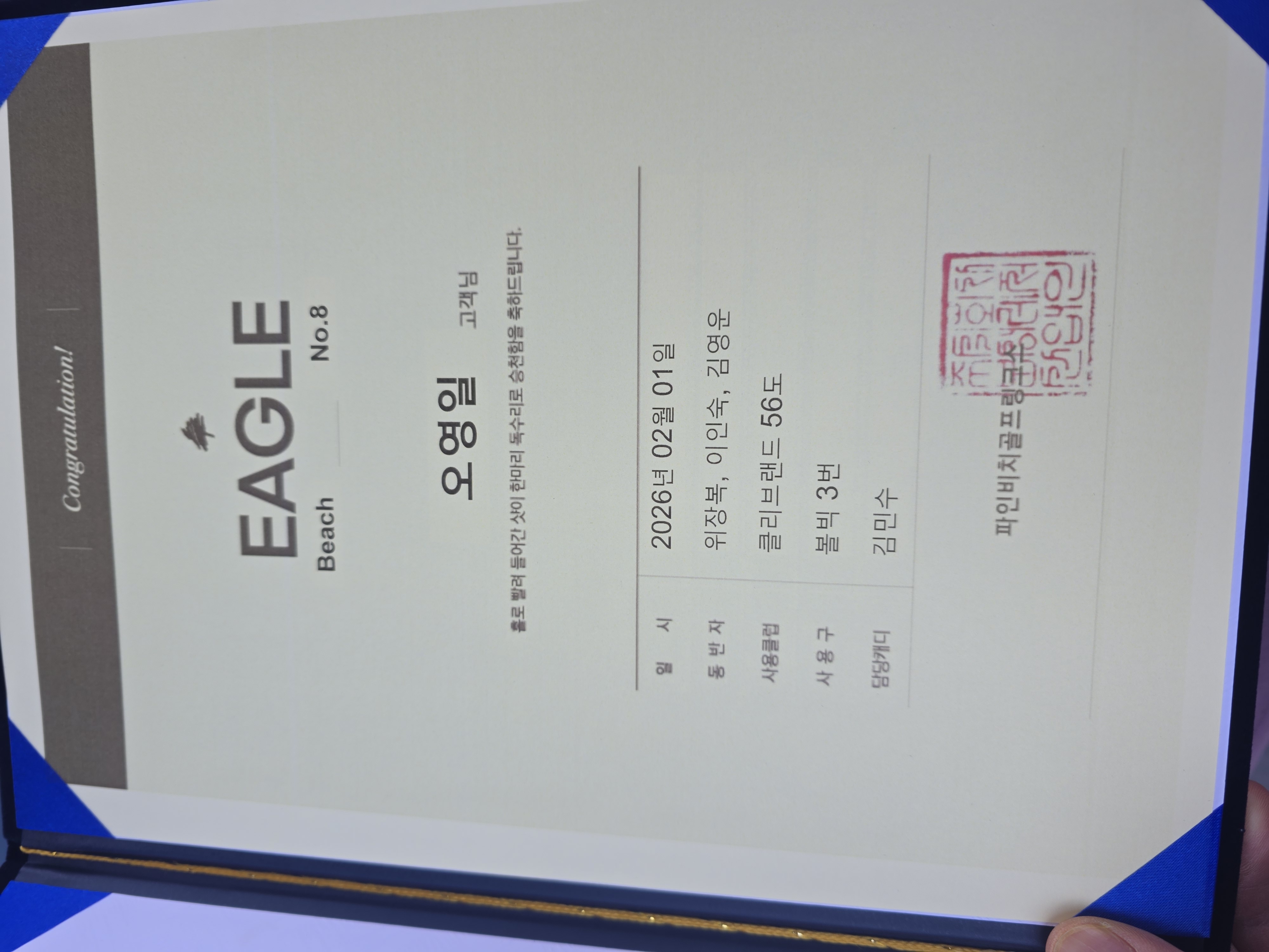 시골집 내려간김에 일요일에~~ 급 조인으로~ 시골집에서도 2시간가까이 걸렸지만ㅋ 스크린 그만치고파 파인비치 도전하러 갔습니다 이번엔 스크린대회랑 같은 파인-비치 코스순 9시50분에 티업 ~ 날이 우중한느낌으로 시작했습니다~~ 그래도 2도 기온에~바람도 적당히 불기도 했지만 전반중간에 눈도 내리고 오락가락날씨 그럼에도 플레이하기 너무좋았습니다~ 전구장OB없이 올 해져드ㅋ부담덜기ㅋㄷ 전반은 티샷보다 세컨..아이언이ㅠ 탑핑 생크까지 아이언이 너무안됬어요ㅠ 러프들어가면 공이 다잠기고 샷이 어렵네요 그래서 전반 그냥저냥 넘어가기ㅋ 후반은 갑자기 날도 풀리고 술도깨고나니 좀 잘맞은편이었네요 비치코스 15번홀 ㅋ 직접가니 바람도많고 거리도 180m 가까이 보고 쳐야되는데 부담이 장난아니었습니당~~ 유틸잡고 슬라이스나서?ㅋ 겨우 그린초입에떨어짐 25m 오르막퍼팅으로 겨우보기 마무리 후반8번 파5 에서ㅋ 일냈습니다 티샷은 230-240미터쪽 좌측벙커들어갔고 세컨은 벙커에서 유틸로 우측보고 강하게 치니 35M 어프로치..포대그린느낌이라서 핀은 안보이고 깃대만 보였습니당 그린초입에 떨어뜨려서 잘 굴러갔다고 했는데 동반자들과 캐디분이 샷이글이라고 외쳐주셔서ㅋ 들뜬마음으로 가보니 정말로 골인 못쳤지만 이걸로 파인비치 오길 잘했다 ㅎㅎ 막홀티샷하고 가는길에 경기과에서 나와서 호구조사?ㅎ 하고 종료되니 상장까지 훈훈하게 마무리 했습니당 결론..필드전날 과음하지말자!ㅠ