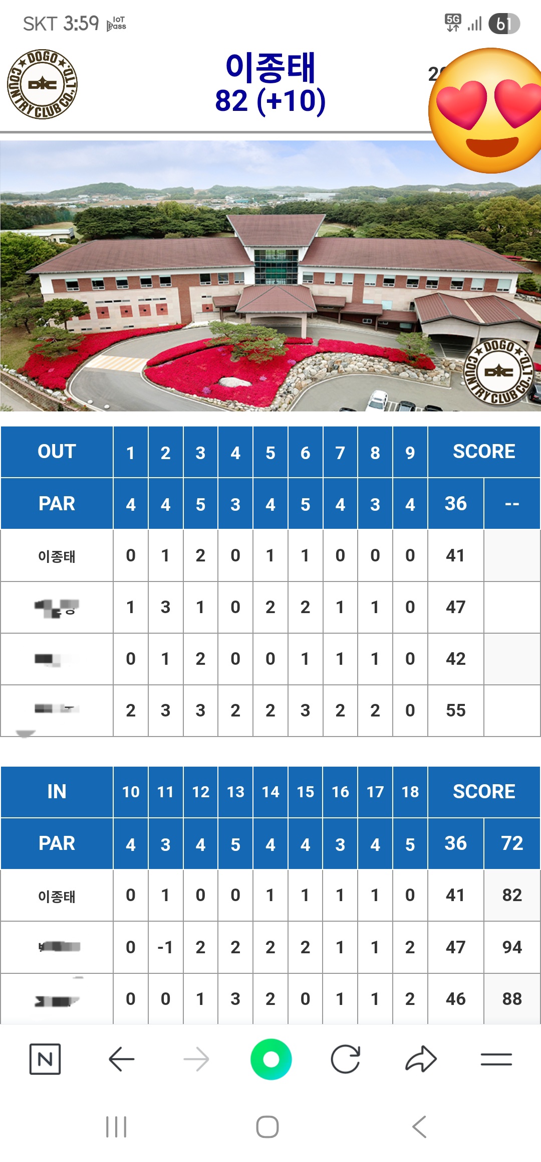 거래처 초청라운딩 으로 도고cc. 다녀왔어요~ 1 vs 3 쓰리박氏 라운딩ㅎ 근처 사시는 거래처 누님댁에 저녁자리까지 준비해주셔서 감사한 하루! 엄청 맛나게먹은 방생해서 키운 오골계🐓~ 자꾸 생각이나네..ㅎ 😋🍶