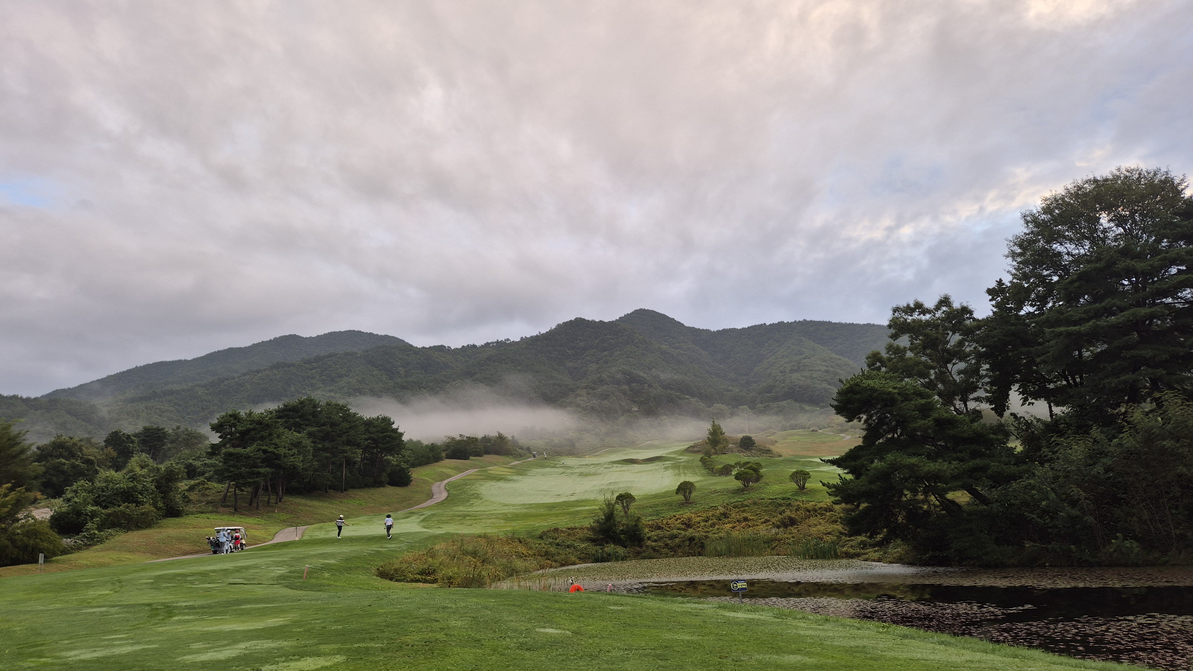 티옾:10월 5일 06시 54분 코스:나무->사과 슼!치면서 느꼈었던 다이나믹함을 필드서 경험해보고파서 고향 친구들과 함께한 롼딩! 첫홀부터 그린이 산 꼭대기에 있는듯한 가파른 오르막! 실물영접은 기대이상~~~!!^^ 3단그린의 1단이 사람 키높이정도는 증말 감탄사가 절로 나옵니다 슼에서 느꼈던것처럼 오르막 내리막 정말 장난? 아닙니다 ㅎㅎ 파5에서 티샷이 페어웨이에 박혀 공을 못찾는 불상사?는 쫌.. . .(포어캐디라도 있었으면 좋았을듯) 공차느라 쪼매 밀리는것도 조금은 아싑네요~~^^ 친구들과 실것 웃으면서 좋은 날씨에 즐거운 롼딩했네요~~^^