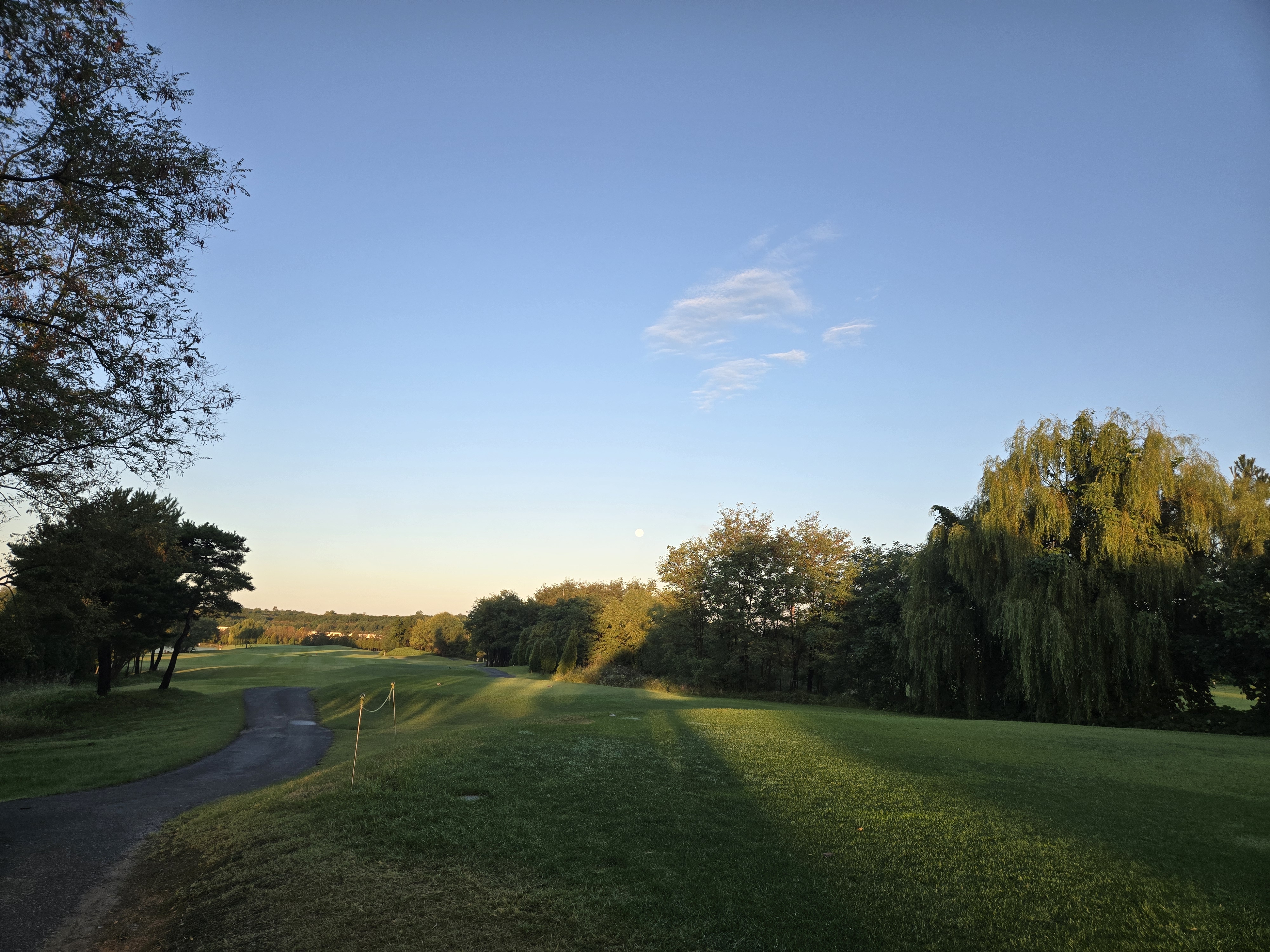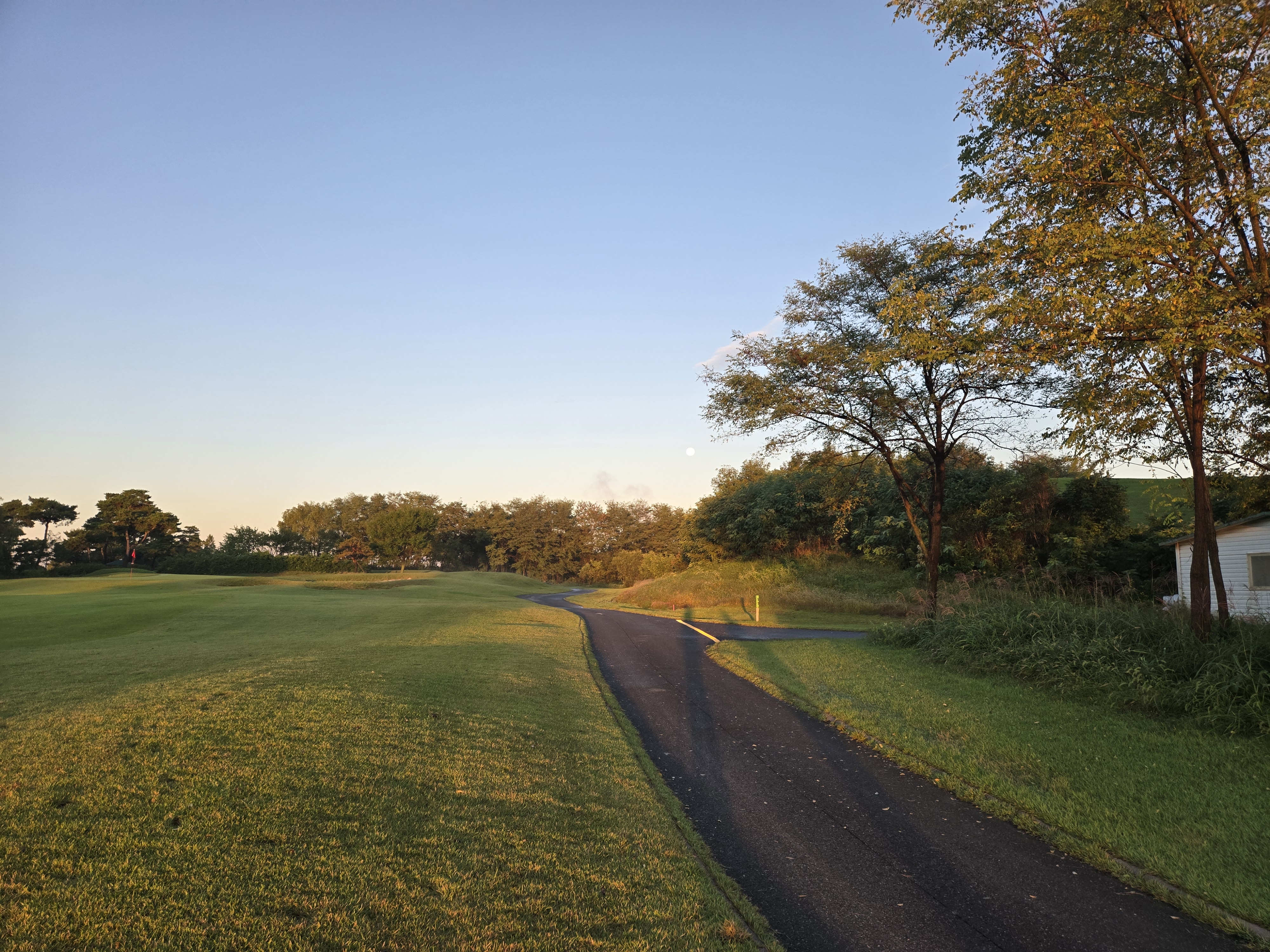 추석 연휴에 교통체증이 심할까봐 가까운 드림파크CC로 잡았는데 역시 왕복 이동 거리도 짧고 차가 하나도 막히질 않았네요. 추석 당일에도 구경 못한 보름달을 구경했네요. 날씨도 최고 였던것 같습니다. 다만 전날 비가 많이 와서 페어웨이랑 러프쪽에 진흙이 많았던게 아쉬웠네요. 코스난이도는 폐어웨이는 넓고 전장은 긴편이네요. 장타자분들에게는 좋은 코스네요. 그린 스피드는 2.8이었는데 생각보다 안 굴렀네요. 동반자분의 70미터 샷 버디도 구경하고 ^^ 금일 캐디님도 잘 만나서 즐겁운 라운딩이었습니다.