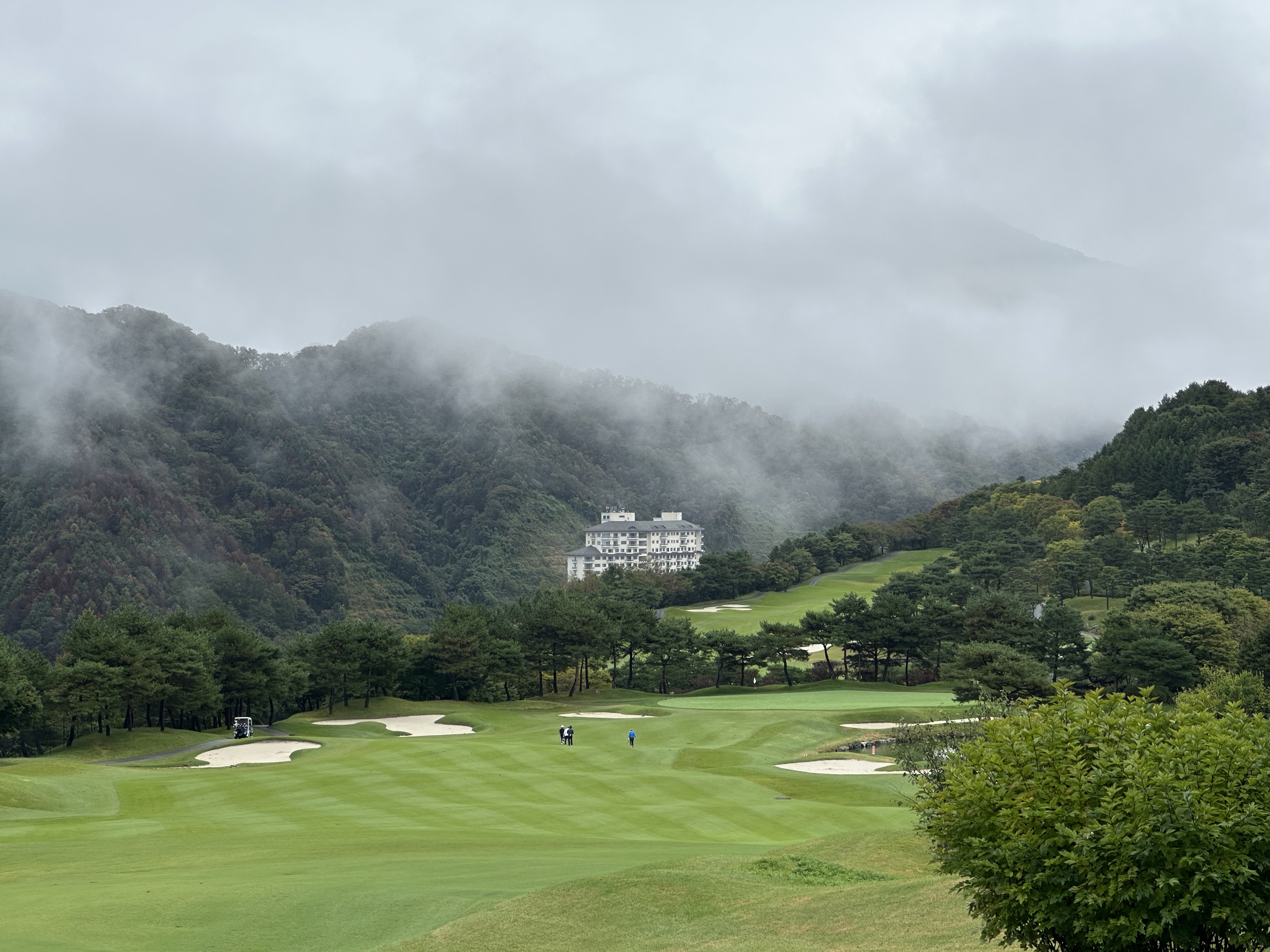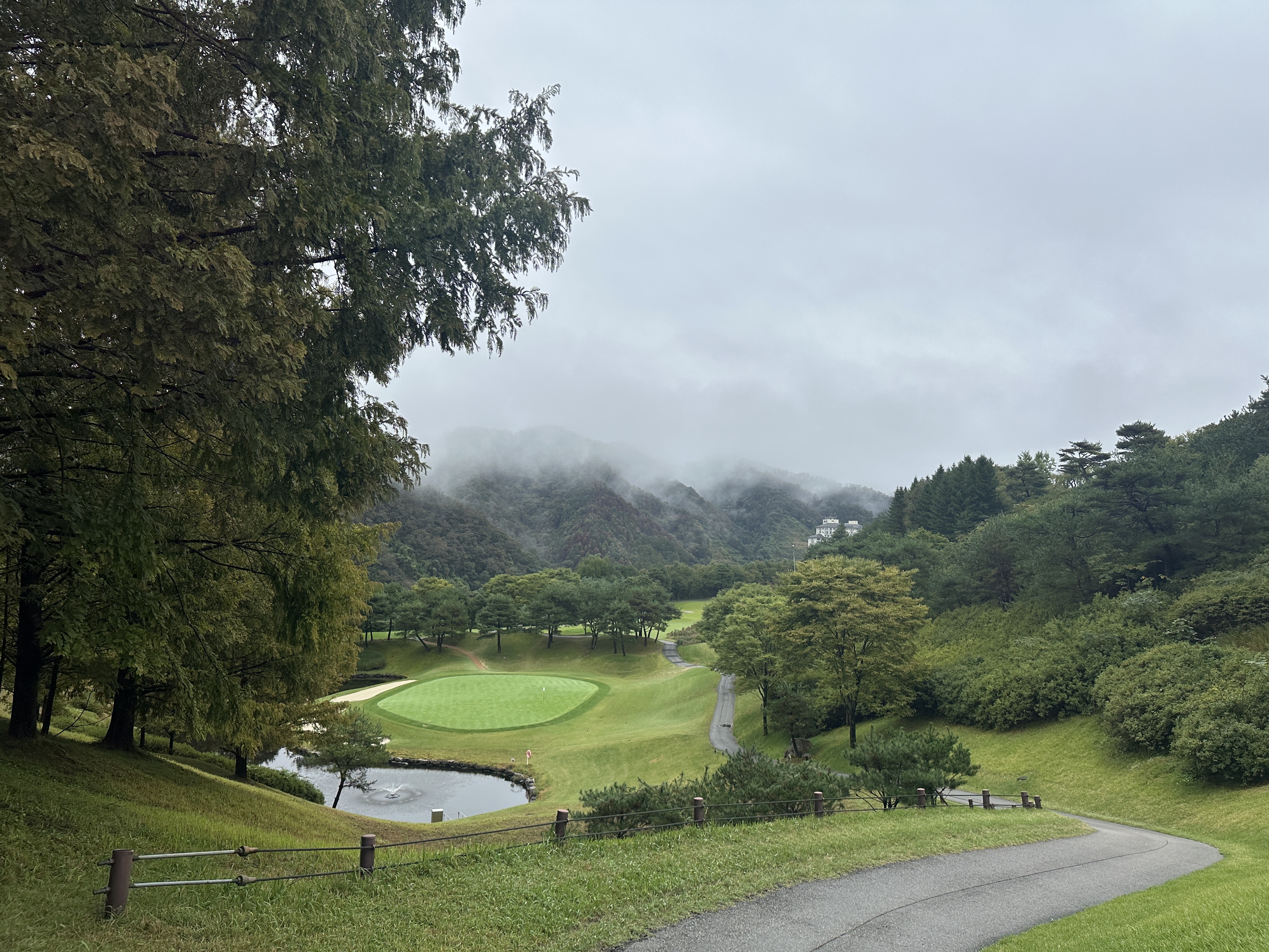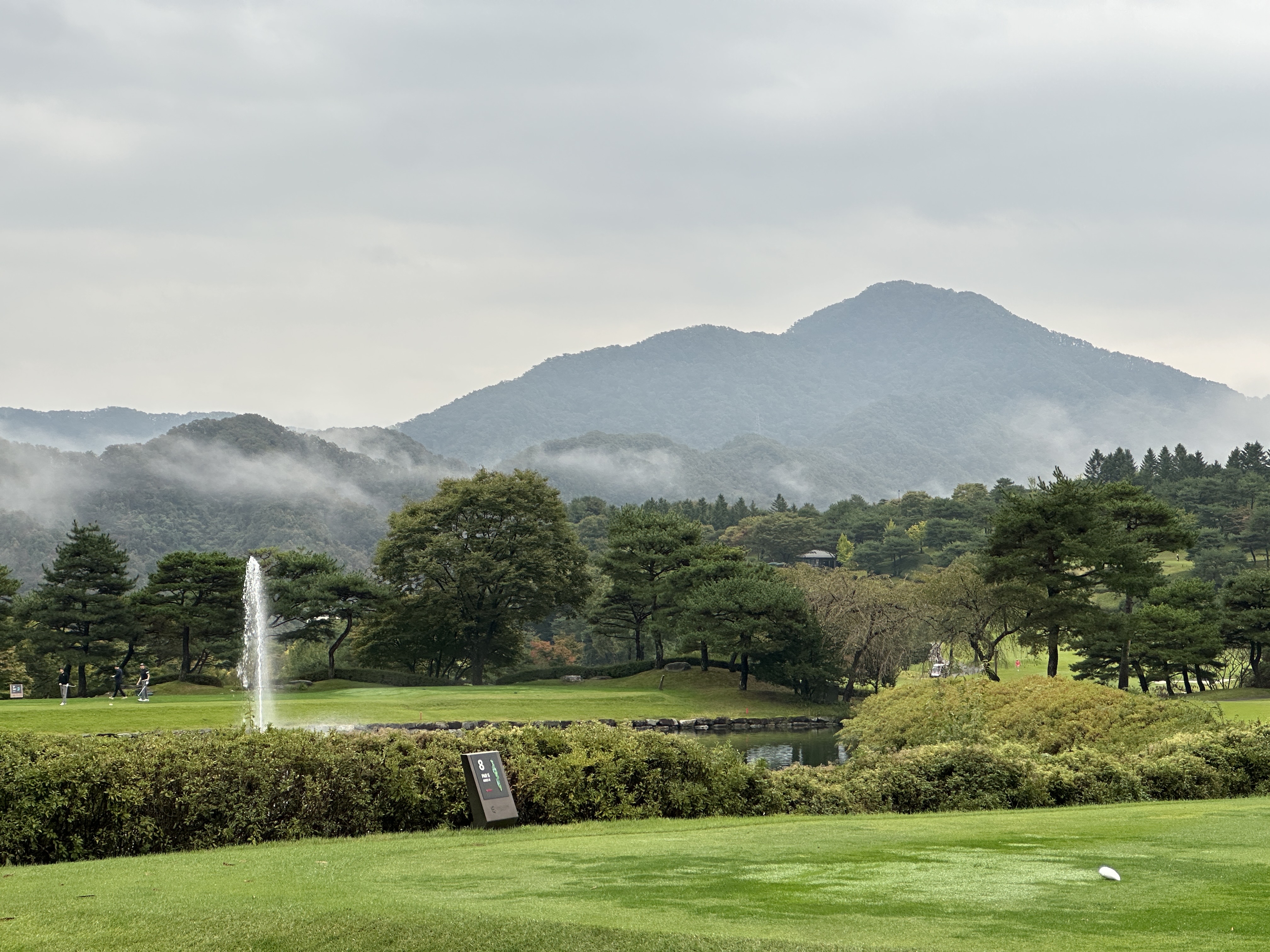 최근에 갔던 엘리시안 강촌 입니다. 평소에는 안개가 많이 끼면 앞이 보이지 않아서 어려움이 많은데 이날은 안개가 멀리에서만 있다보니 너무 경치가 멋진 날이었습니다. 신선 놀음 하는 것 같네요 골린이지만 마음껏 경치도 즐기고 사진도 신나게 찍고 욌습니다. 엘리시안이 경사가 많아서 저에게는 너무나 어려운 곳이지만 일행모두 다들 재미있게 즐기면서 쳤습니다. 보통 그린 스피드 2.7 이슬비로 젖은곳은 2.6 정도였습니다.