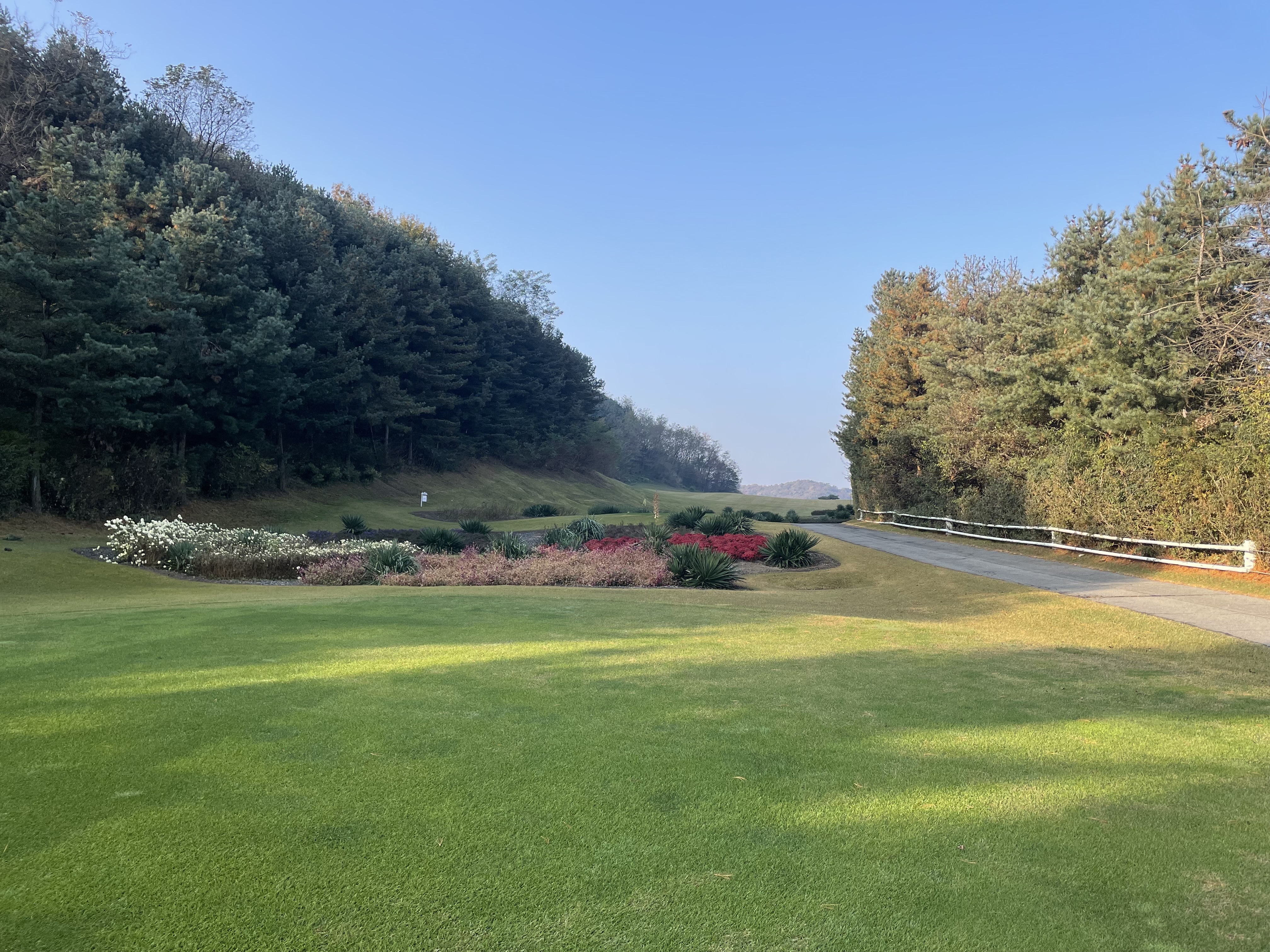 아침 첫티..이슬이 있는 그린인데도 2.8이상.. 그린 빠르고 어렵습니다.. 36홀이라 널널하고..라이트가 없어서 많이 안받는다 그러더라고요.. 알프스,몽블랑은 넓고 길고 록키,올림푸스는 좁고 짧다고.. 재미있는 구장이었습니다.. 재방문 의사 있음..