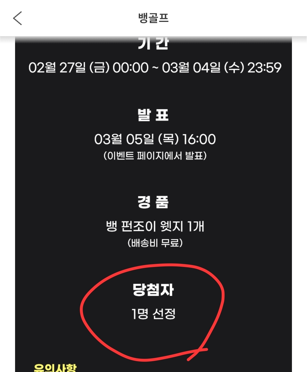 저번주까지 2명 당첨이더니 이번주부터 1명 당첨으로 바꼈네요~