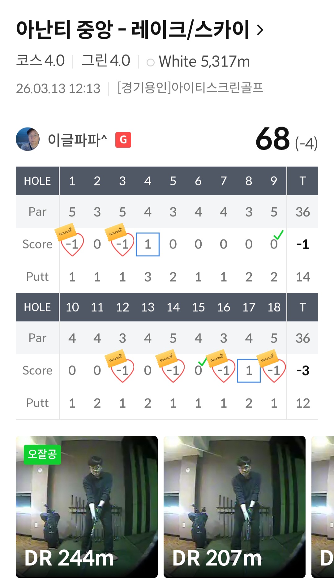 스코아 68타