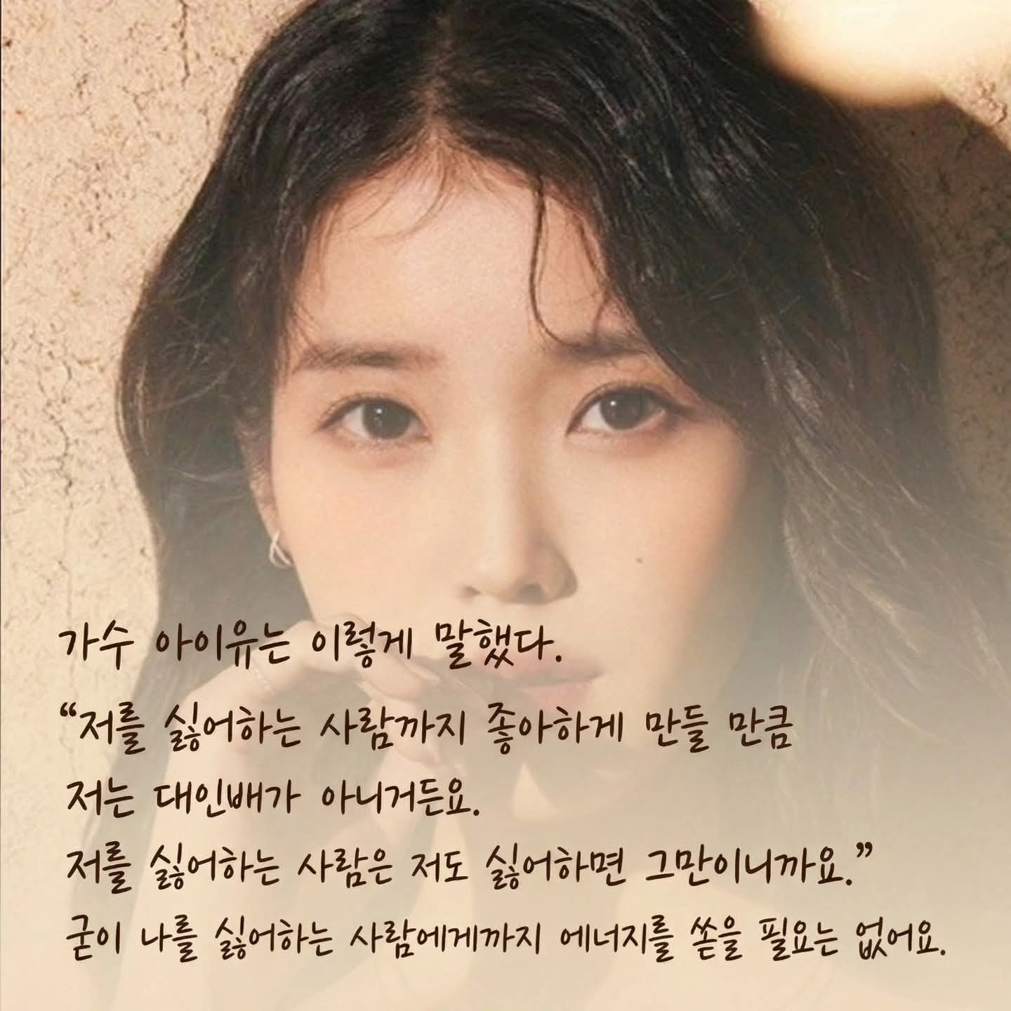 아이유도 나랑 생각이 똑같네ㅎㅎㅎ 굳이 애쓰지 말 것~!!! 내 소중한 에너지를 낭비하지 말것~!!! 오늘도 내 사람들에게만 최선을 다하기~!!!🌿
