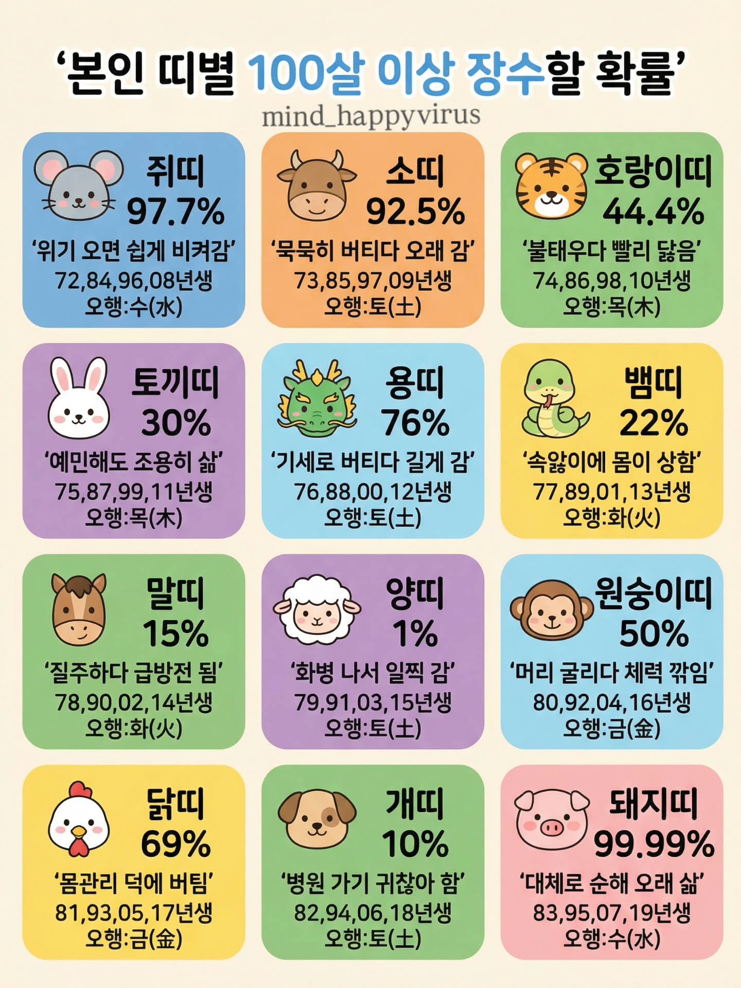 양띠~ㅎ우째~~~ 나 100살까지 살 수 있을까..? 😂 띠별로 보는 장수 확률! ※과학적인 근거는 없으니 재미로만 봐주세요