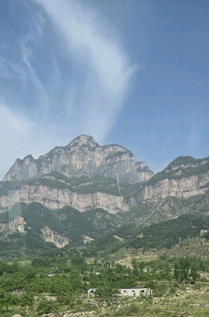 어제는 구릉하나 안보이는 벌판을 하루종일 달렸는데 오늘은 웅장한 산맥을 배경으로 달리고 있습니다(태항산 유람 가는 중)