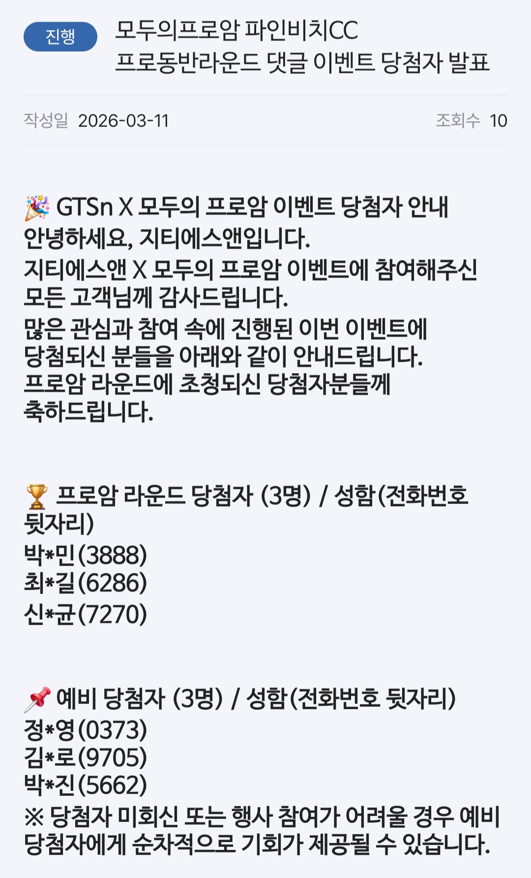 당첨자 발표 났는데... 영남방 계십니까??